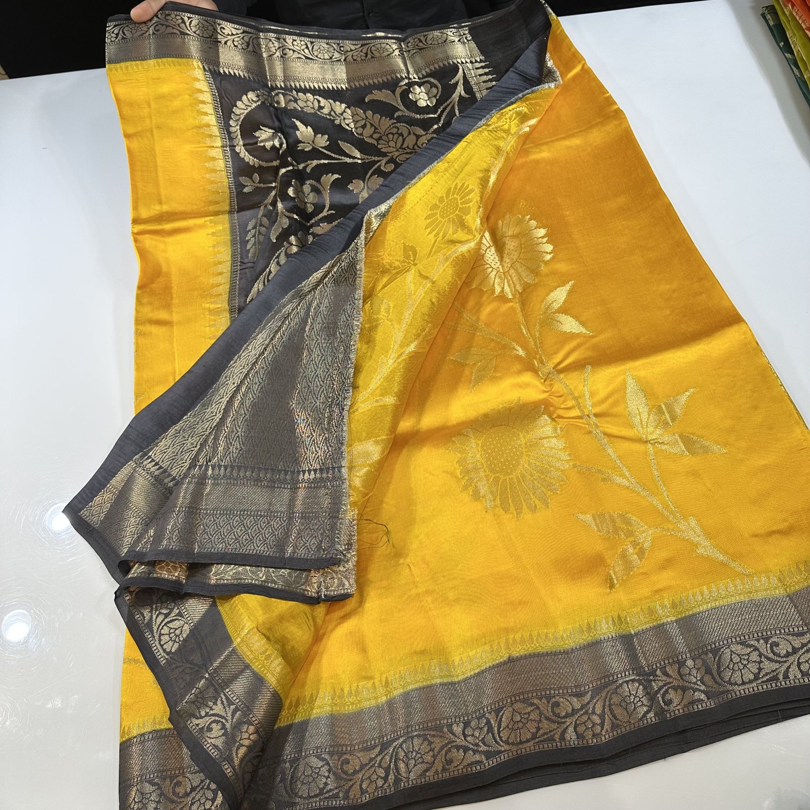 Presenting our exquisite Banarasi Green Mango Silk Saree, a perfect blend of tradition and vibrant elegance. Crafted in luxurious Green Mango silk, this saree is known for its smooth texture, graceful fall, and rich sheen that instantly elevates your look.