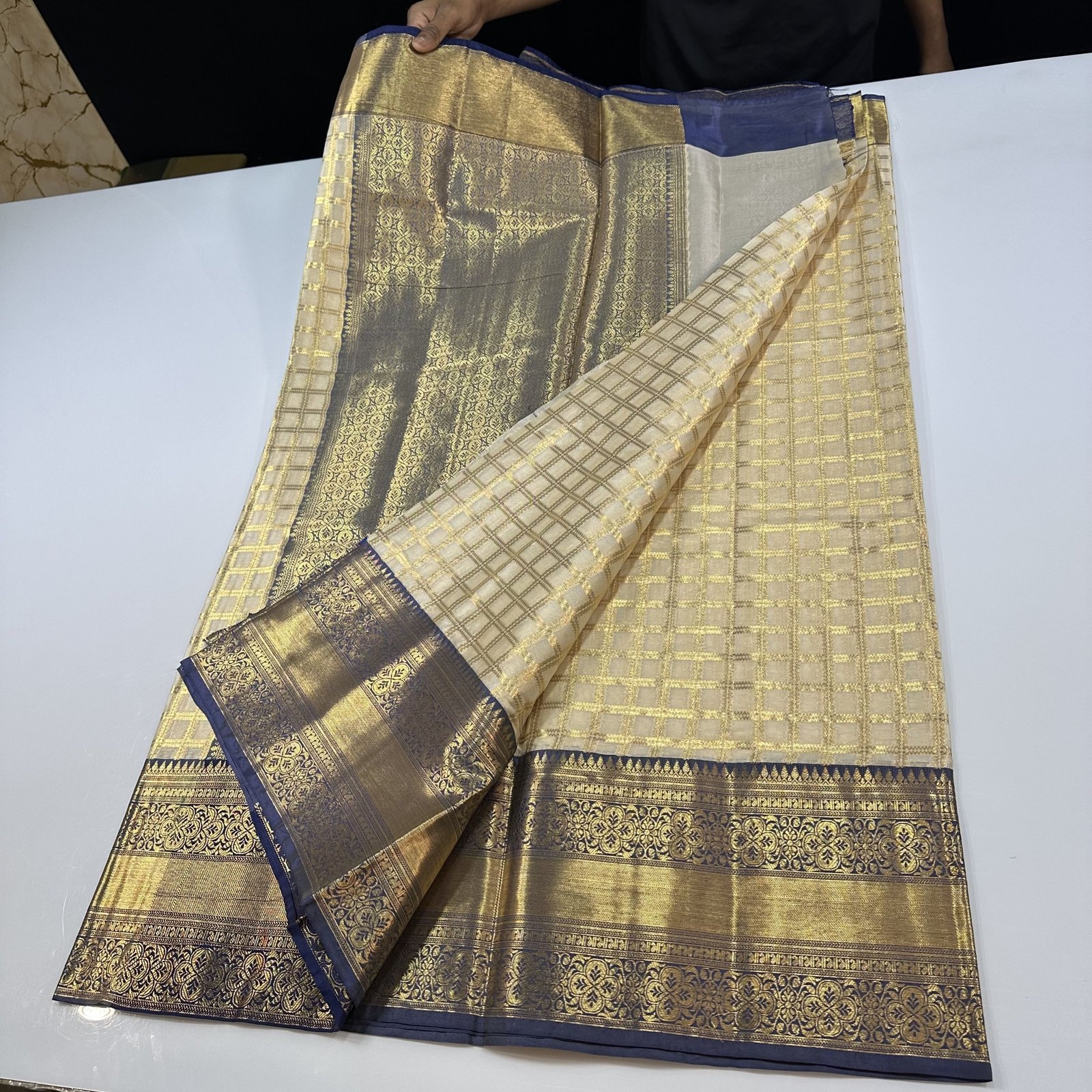 CREAM X BLUE CHOWKDI