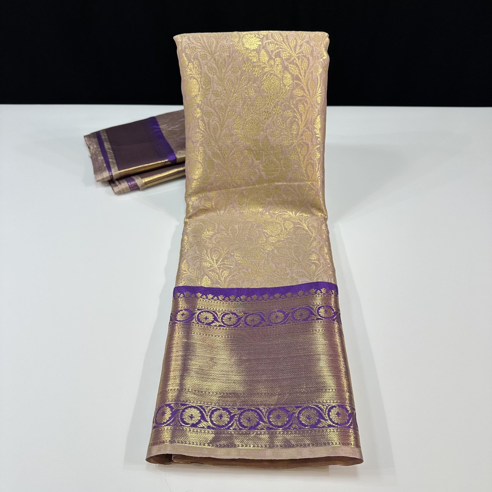 Gracefully blending tradition with thoughtful design innovation, this soft Banarasi semi-silk brocade saree is crafted for refined festive and ceremonial wear. The fabric carries a gentle sheen with a smooth, comfortable drape, making it ideal for long celebrations while maintaining the richness of Banarasi brocade artistry.