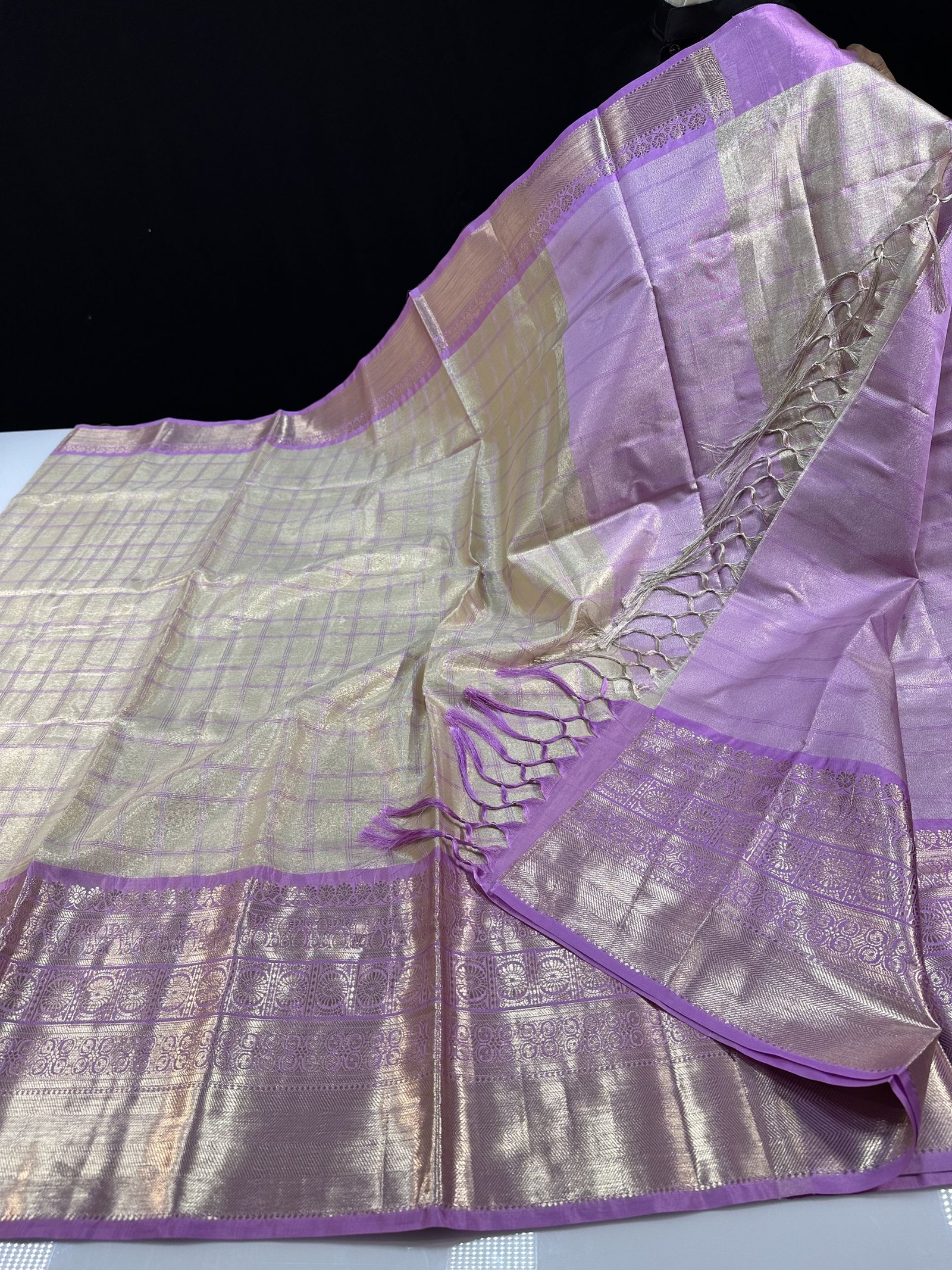 SSOFT BANARASI TISSUE SILK SAREE IN RESHAM WEAVING CONTRAST CHECKS ALLOVER SAREE WITH KANCHI BORDER