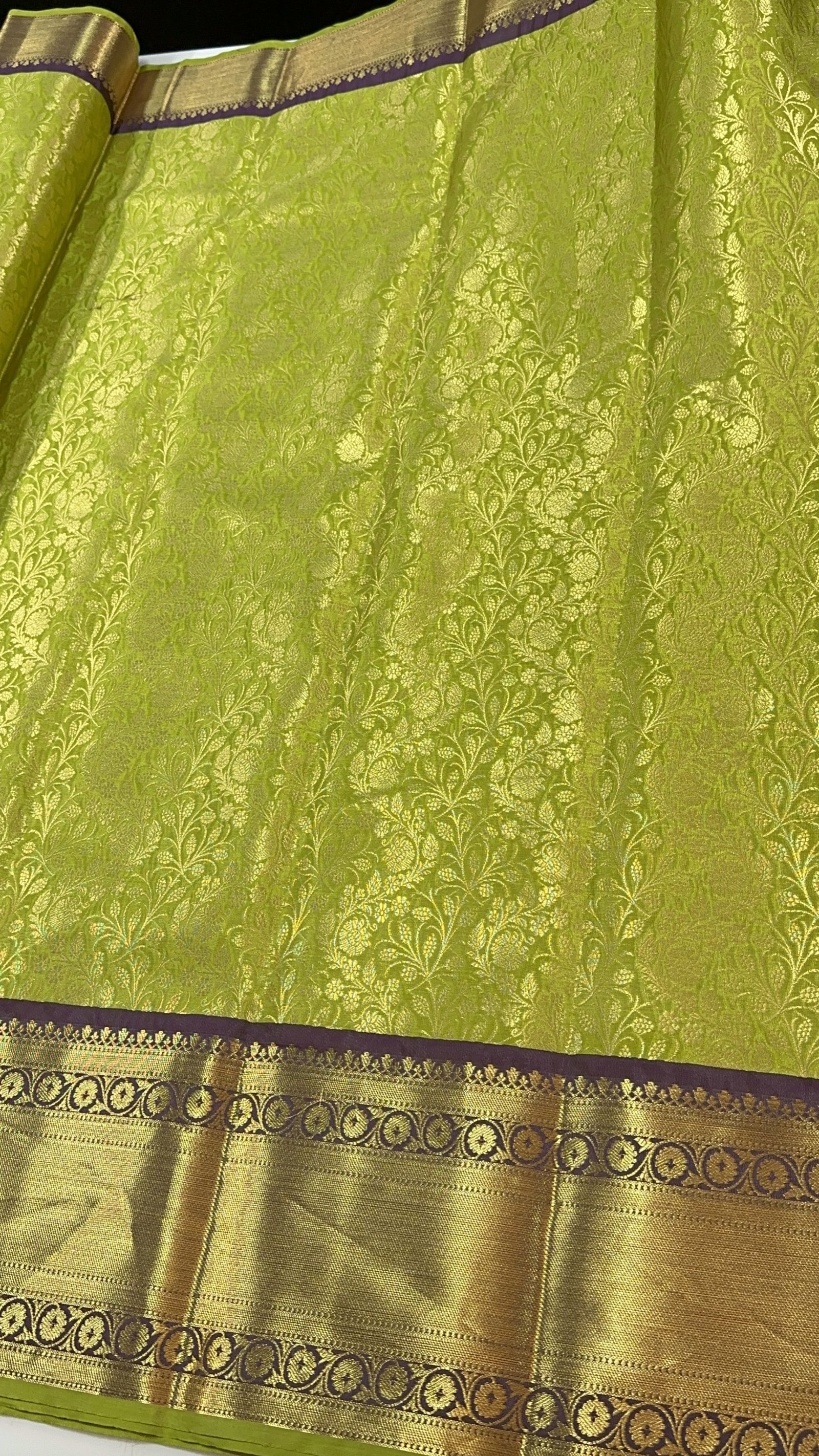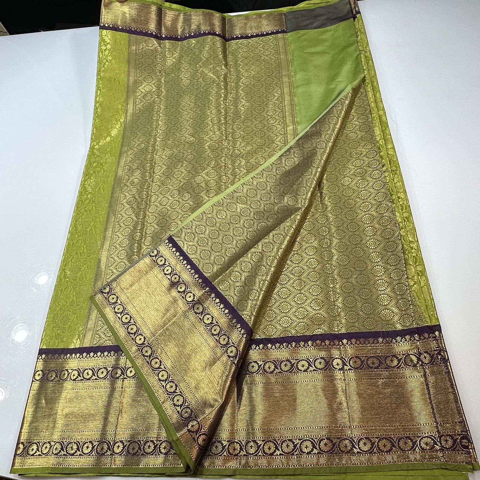 Gracefully blending tradition with thoughtful design innovation, this soft Banarasi semi-silk brocade saree is crafted for refined festive and ceremonial wear. The fabric carries a gentle sheen with a smooth, comfortable drape, making it ideal for long celebrations while maintaining the richness of Banarasi brocade artistry.