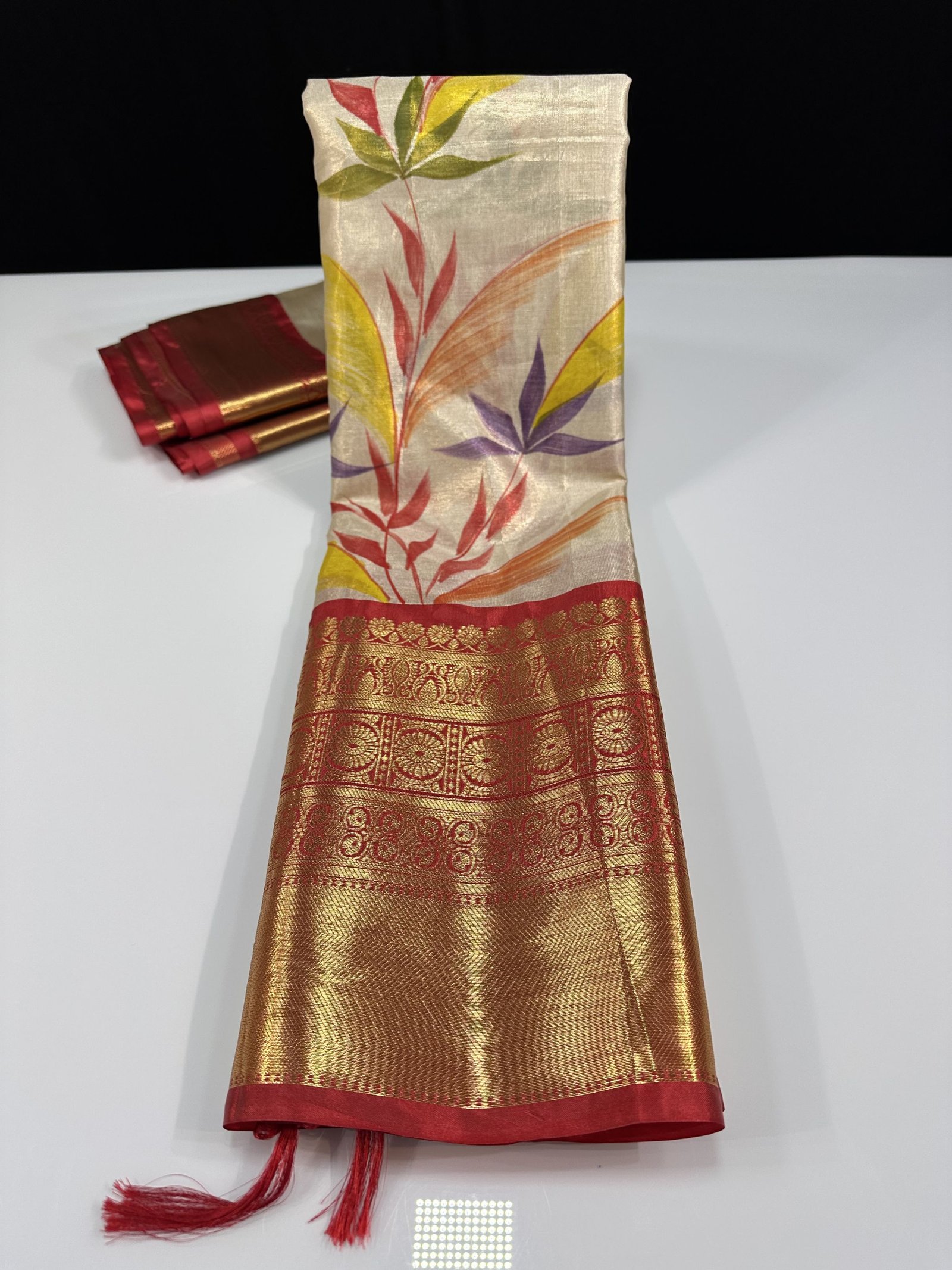 Soft Banarasi tissue silk saree with hand painted floral jaal allover saree with Kanchi border