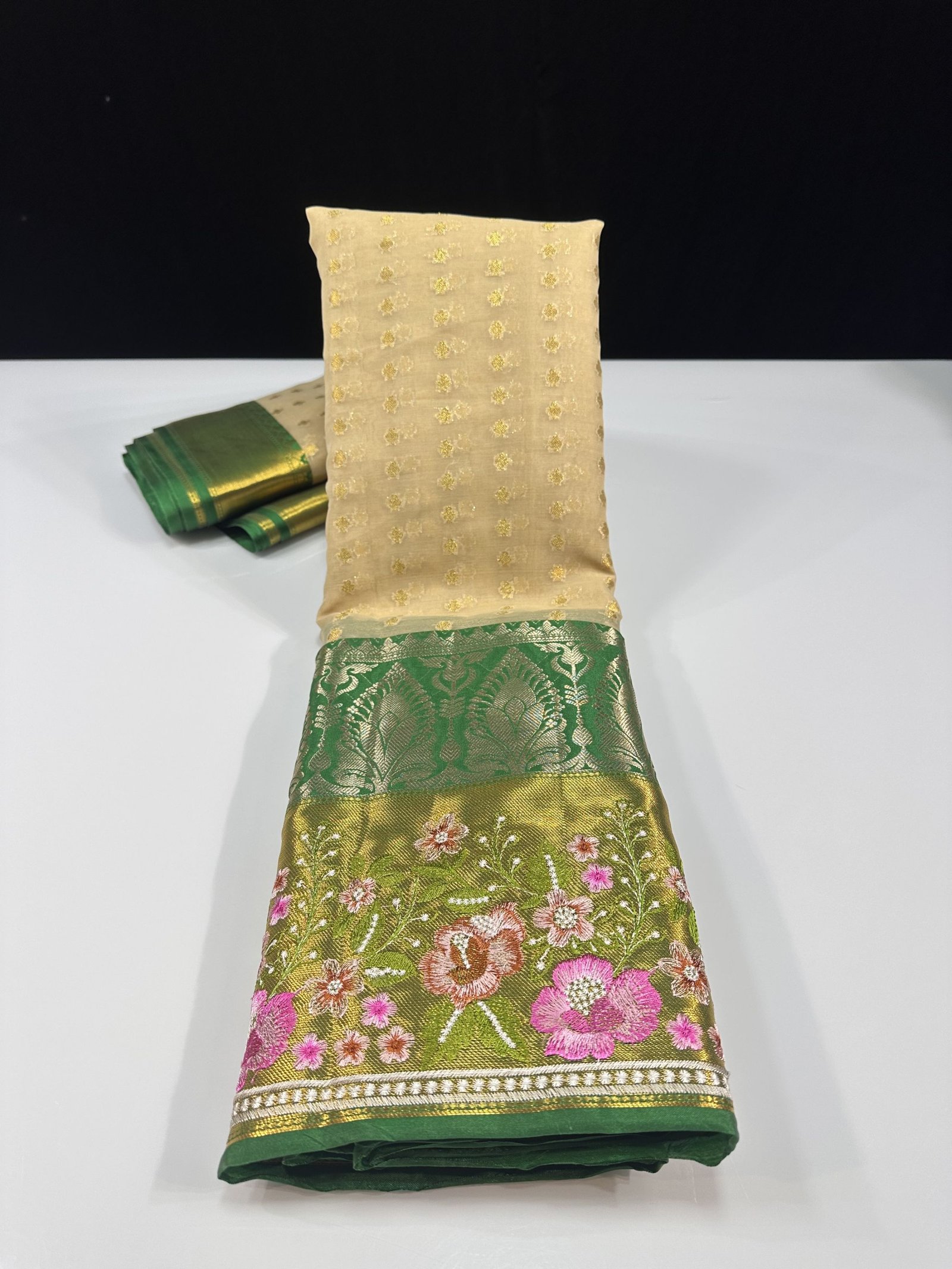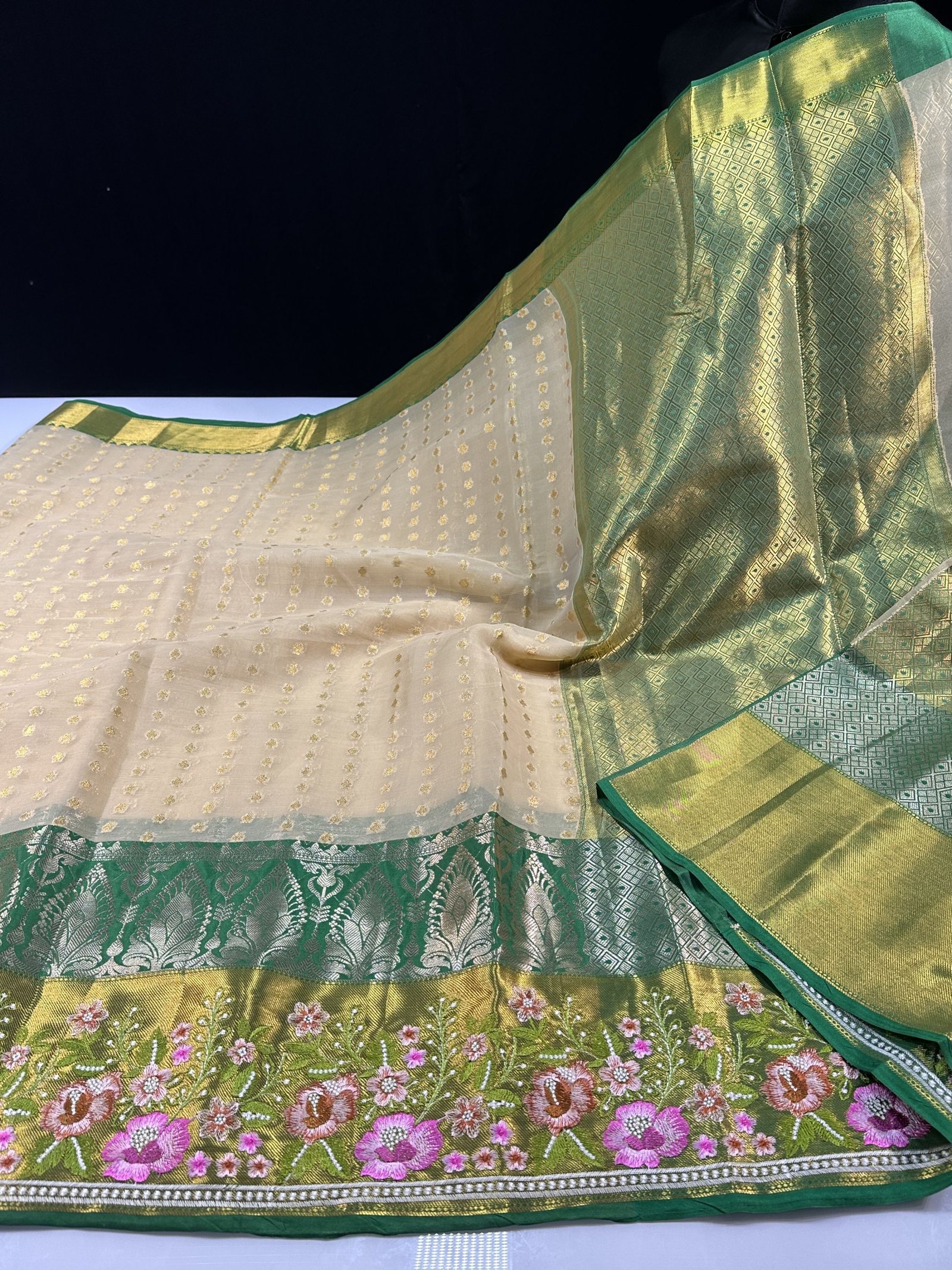 SOFT SEMI-KANCHI ORGANZA SAREE WITH HEAVY MEENAKARI WORK VER WEAVING KANCHI BORDER
