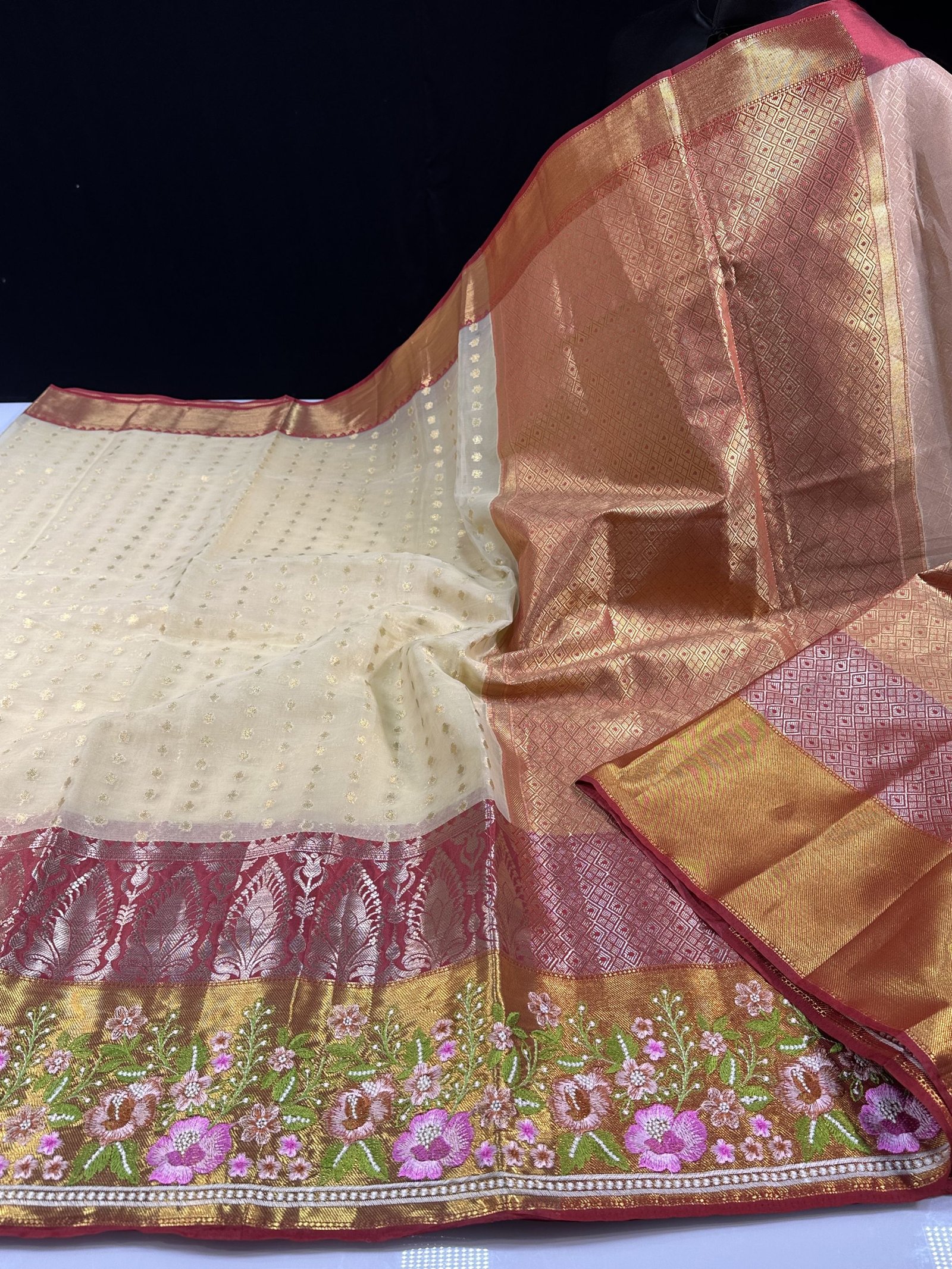 SOFT SEMI-KANCHI ORGANZA SAREE WITH HEAVY MEENAKARI WORK VER WEAVING KANCHI BORDER