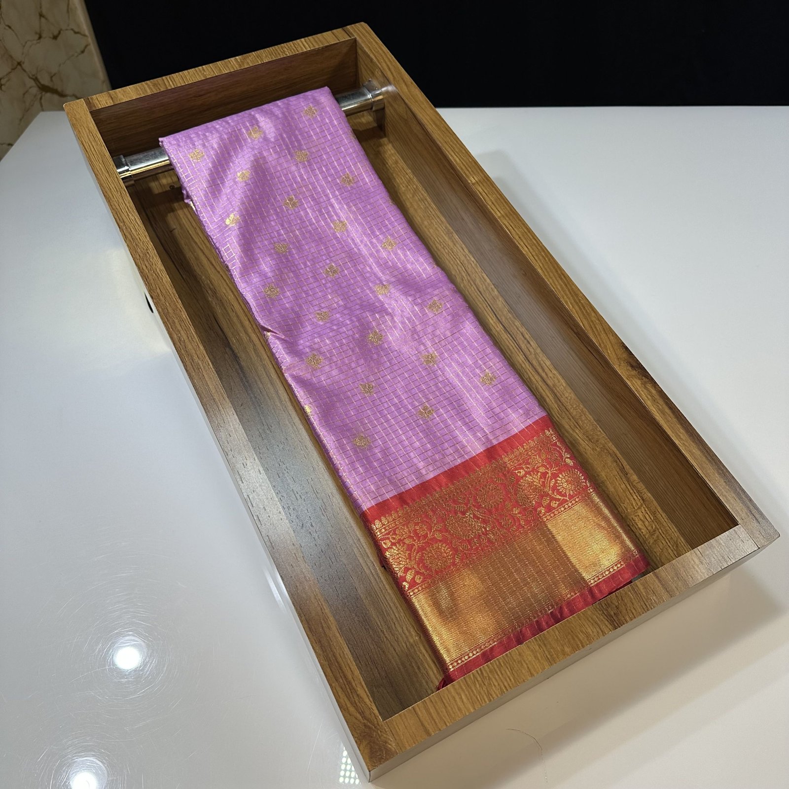 Soft lavender shade semi-gadwal inspired checks saree