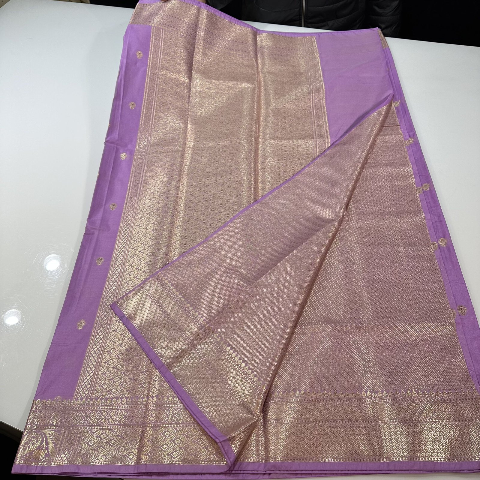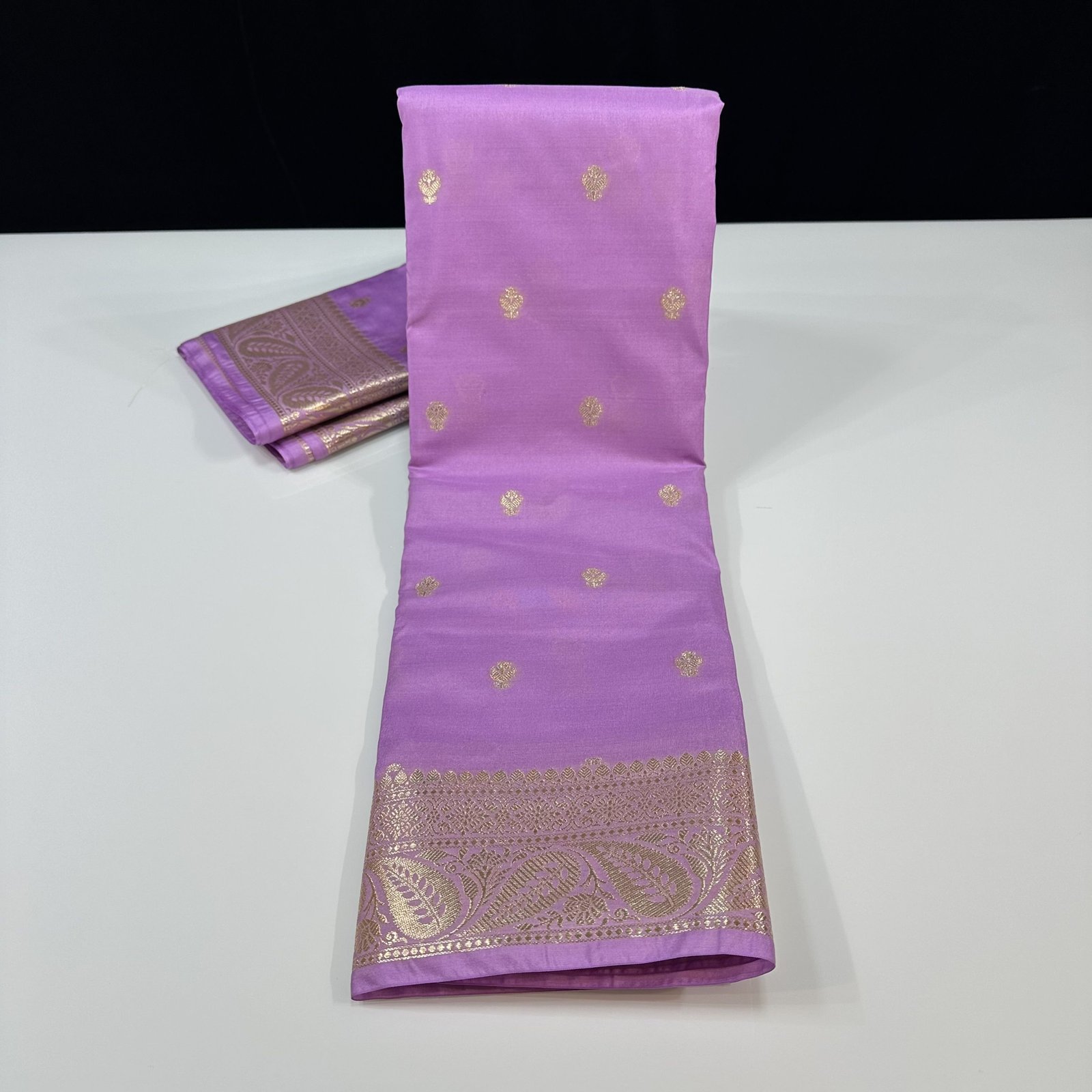 SOFT BANARASI SEMI-KATAN SILK SAREE WITH TRADITIONAL KHADDI BUTY WEAVING ALLOVER SAREE