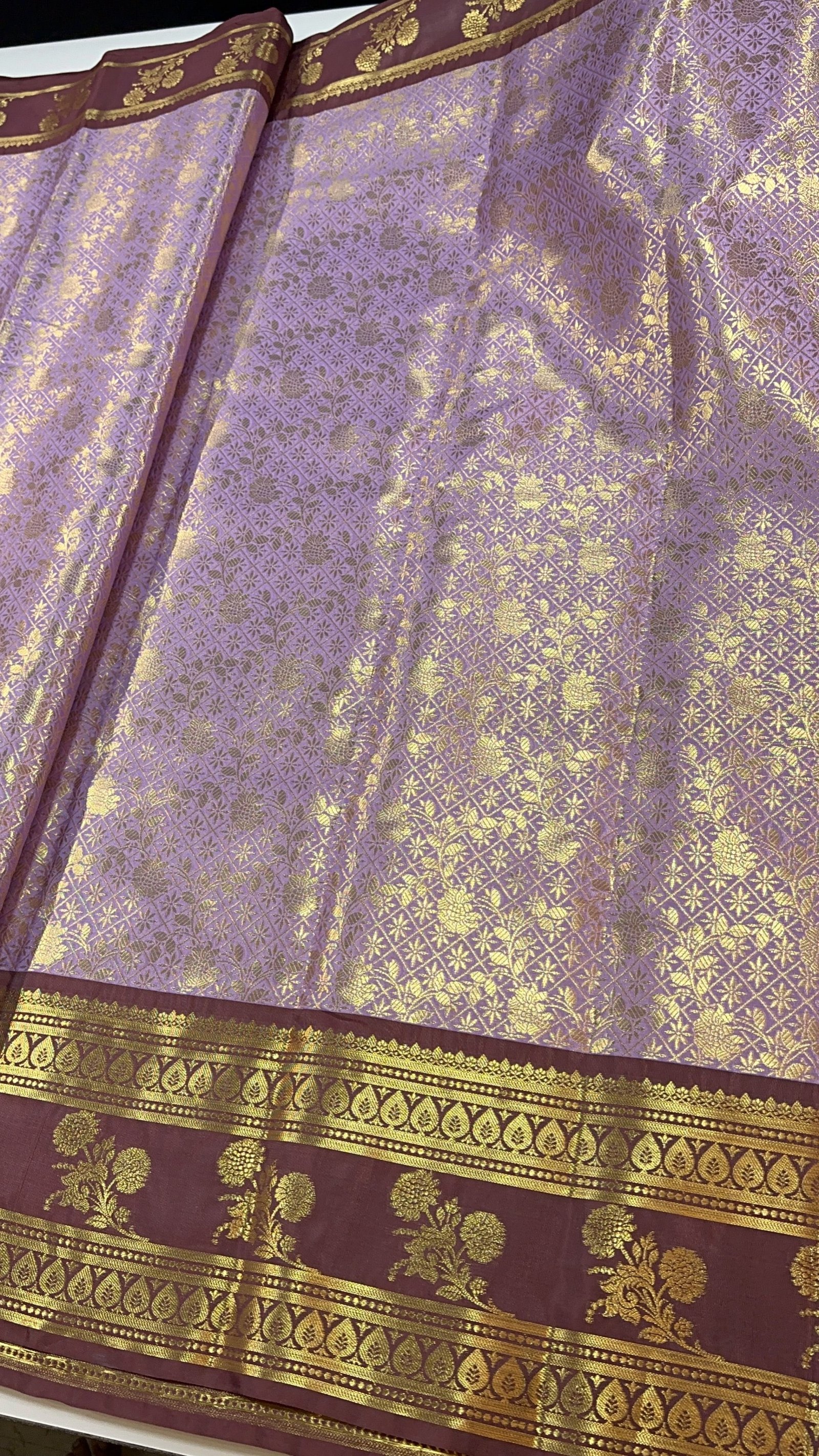 A Banarasi semi-silk brocade saree inspired by the timeless elegance of Kanjeevaram sarees, featuring rich woven patterns that reflect traditional craftsmanship. The intricate brocade work adds depth and texture, giving the saree a luxurious and regal appearance. Soft in feel yet grand in look, this saree drapes beautifully and is ideal for weddings, festive occasions, and special celebrations where a rich, heritage-inspired statement is desired.
