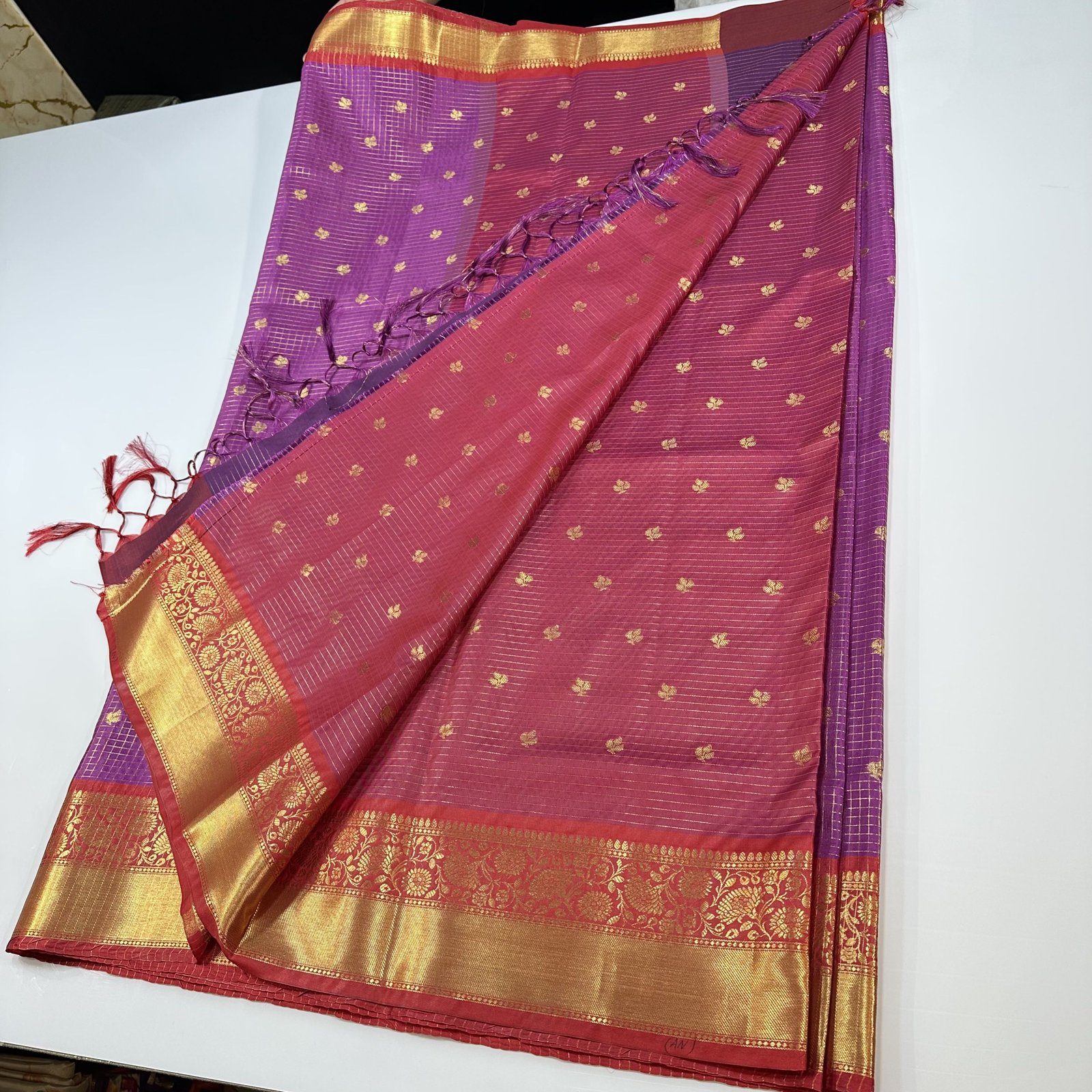 THE VIRAL VINTAGE SAREE NOW AVAILABLE IN 15 SHADES HAVING ZARI WEAVING CHECKS PATTERN WITH ZARI BUTY ALLOVER SAREE