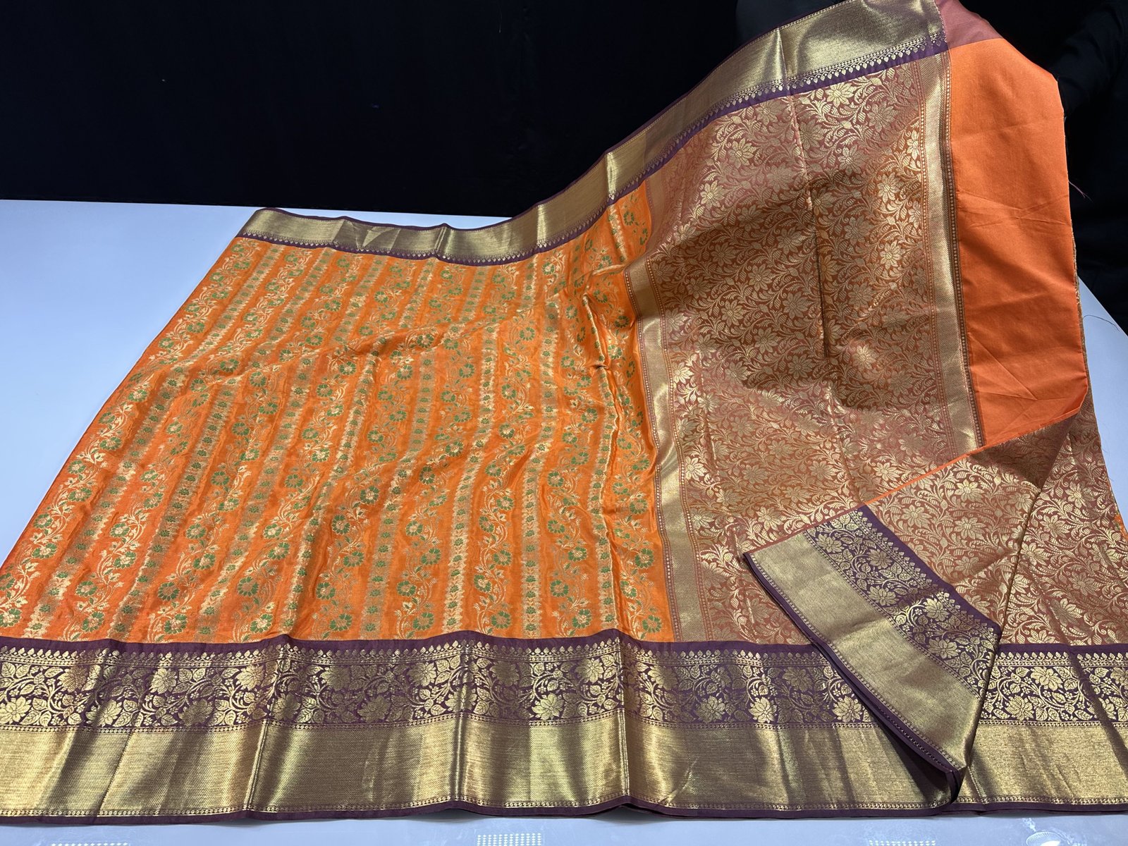 THE BEST SELLING SOFT SEMI-SILK SAREE IN MEENAKARI WEAVING STRIPES