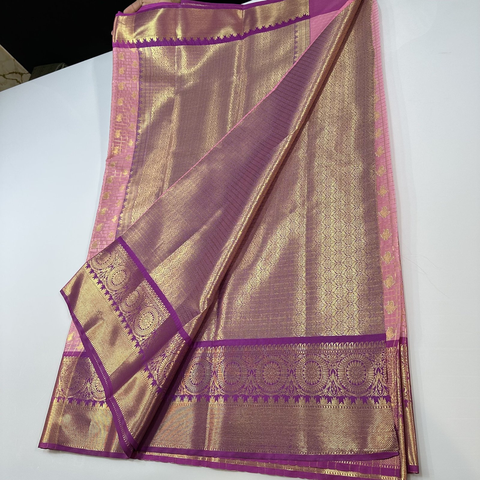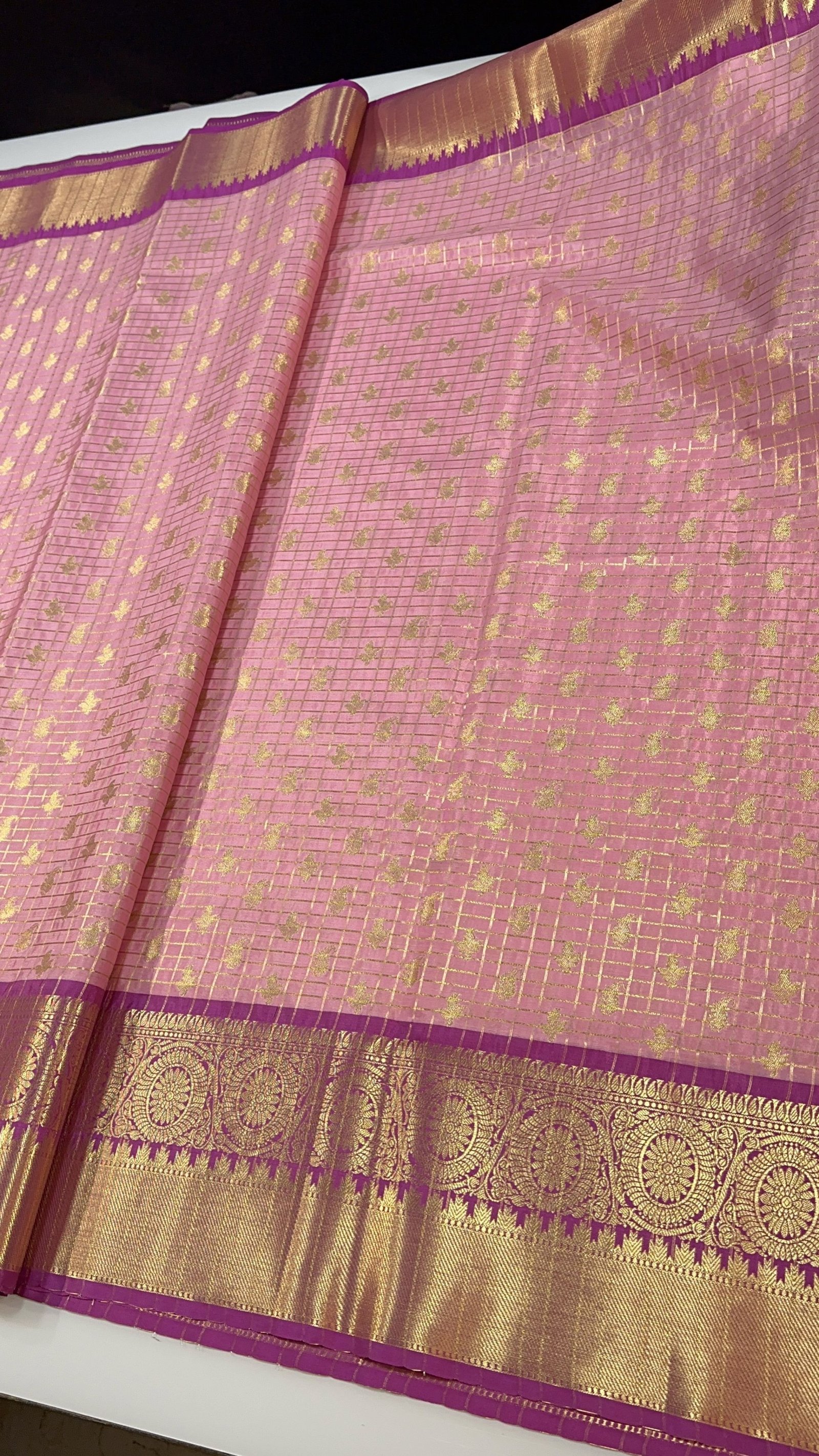 THE VIRAL VINTAGE SAREE IN BEST SELLING SHADES HAVING ZARI WEAVING CHECKS PATTERN WITH ZARI BUTY ALLOVER SAREE AND RICH WEAVING PALLU