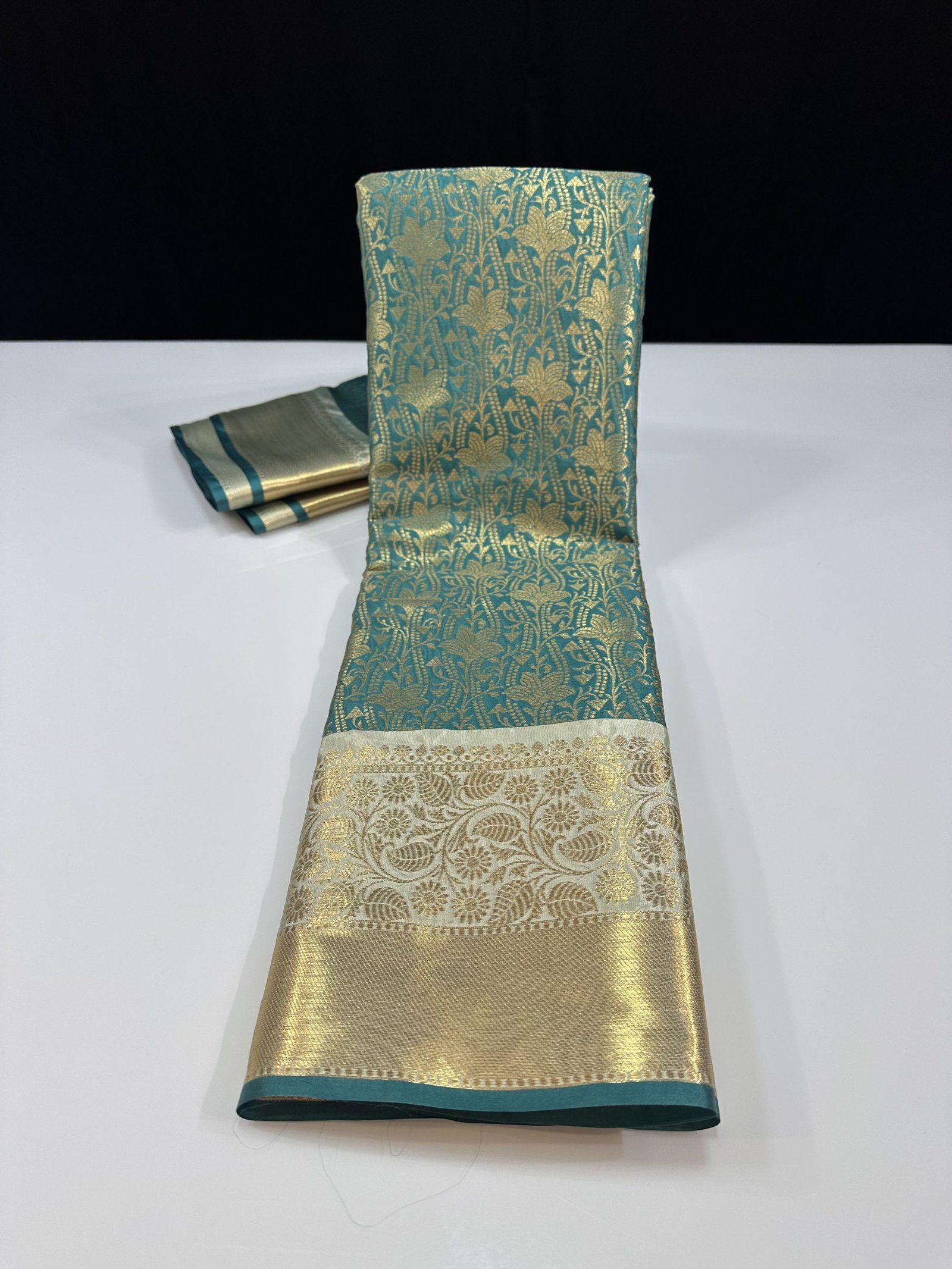 SOFT SEMI-KANCHI BROCADE SAREE IN NEW PIPIN CONCEPT WITH CONTRAST WEAVING KANCHI BORDER