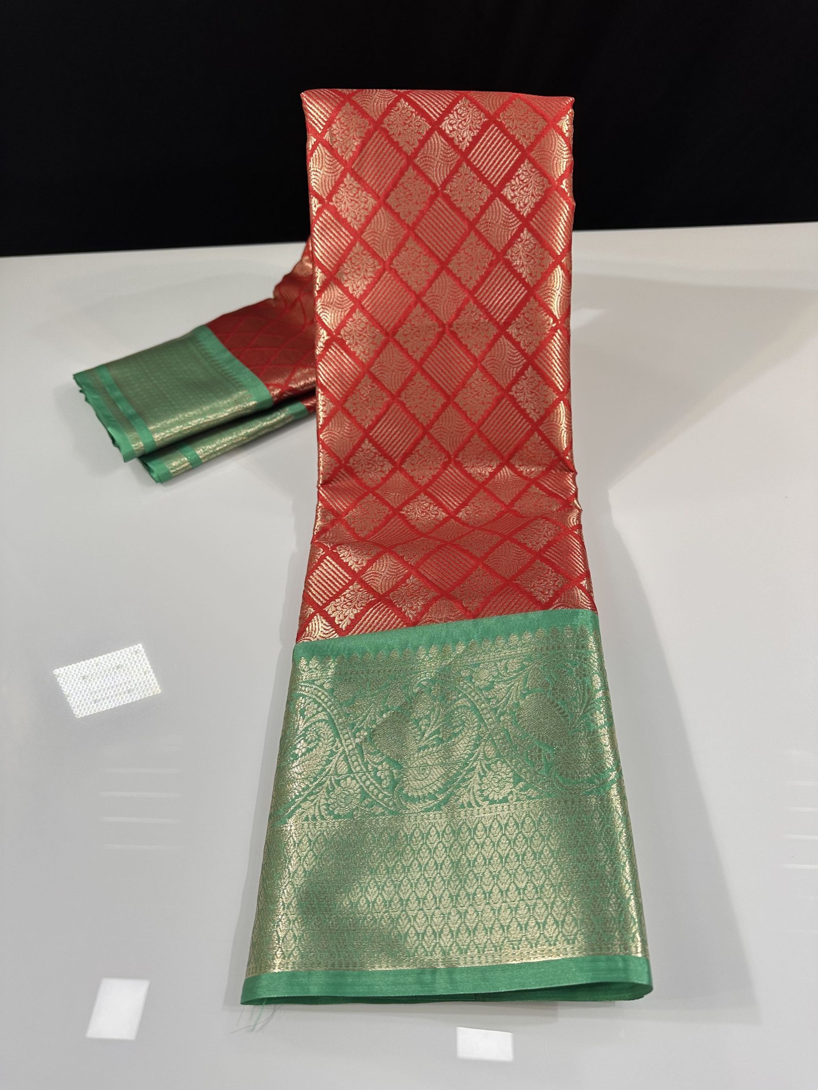 SOFT SEMI-KANCHI BROCADE SAREE WITH CONTRAST WEAVING KANCHI BORDER