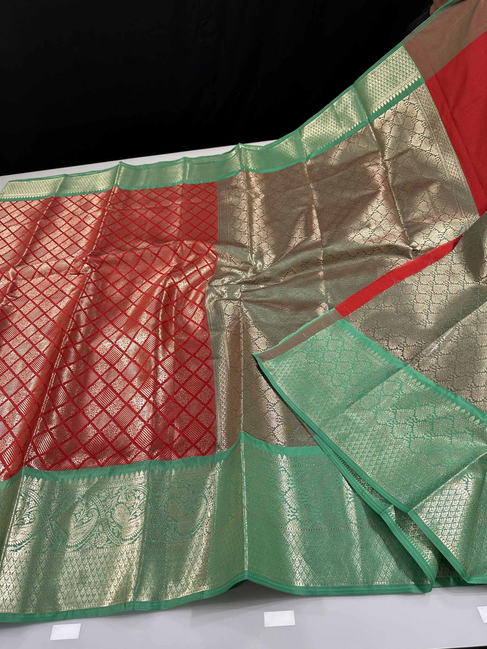 SOFT SEMI-KANCHI BROCADE SAREE IN THE MOST DEMANDING KATLI WEAVING PATTERN HAVING CONTRAST WEAVED KANCHI BORDER