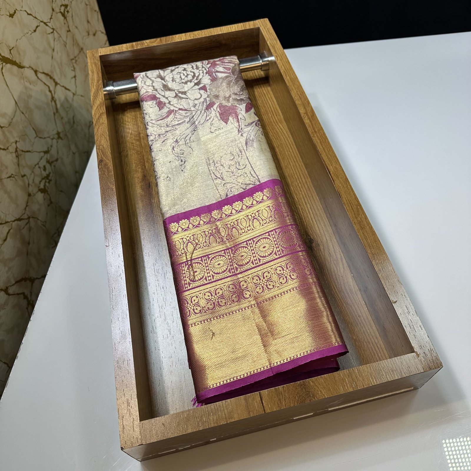 SOFT BANARASI TISSUE SILK SAREE WITH DIGITAL PRINTED JAAL ALLOVER SAREE