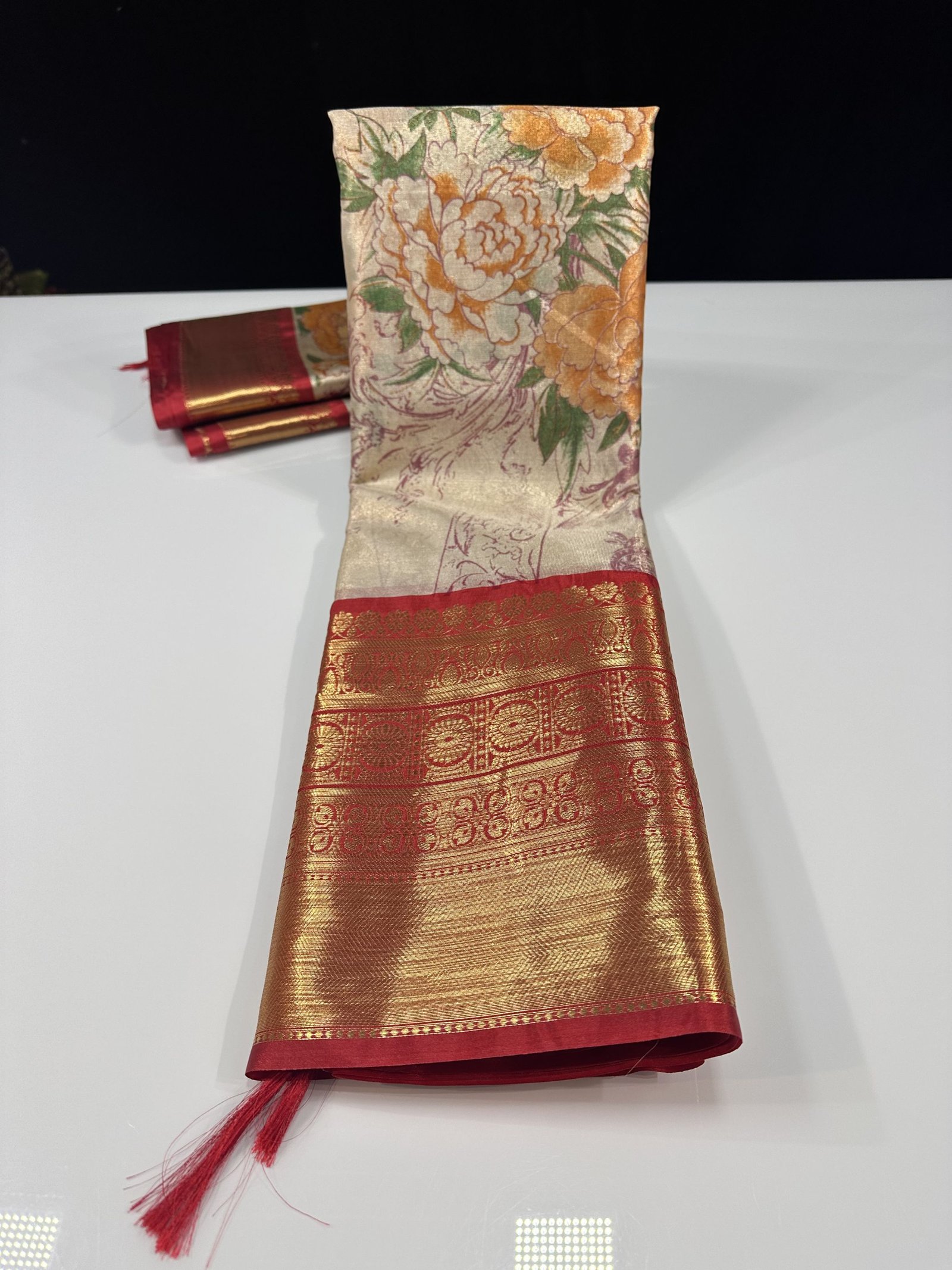SOFT BANARASI TISSUE SILK SAREE WITH DIGITAL PRINTED JAAL ALLOVER SAREE
