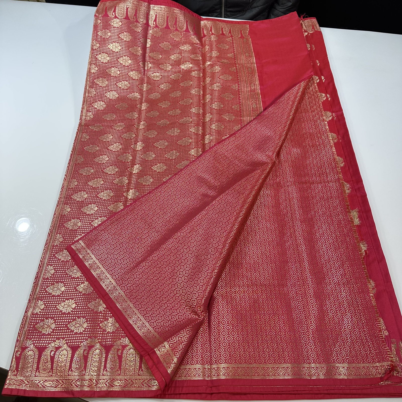 Drape yourself in timeless elegance with this soft Banarasi semi-Katan silk saree, crafted to reflect the richness of traditional Banarasi artistry ✨