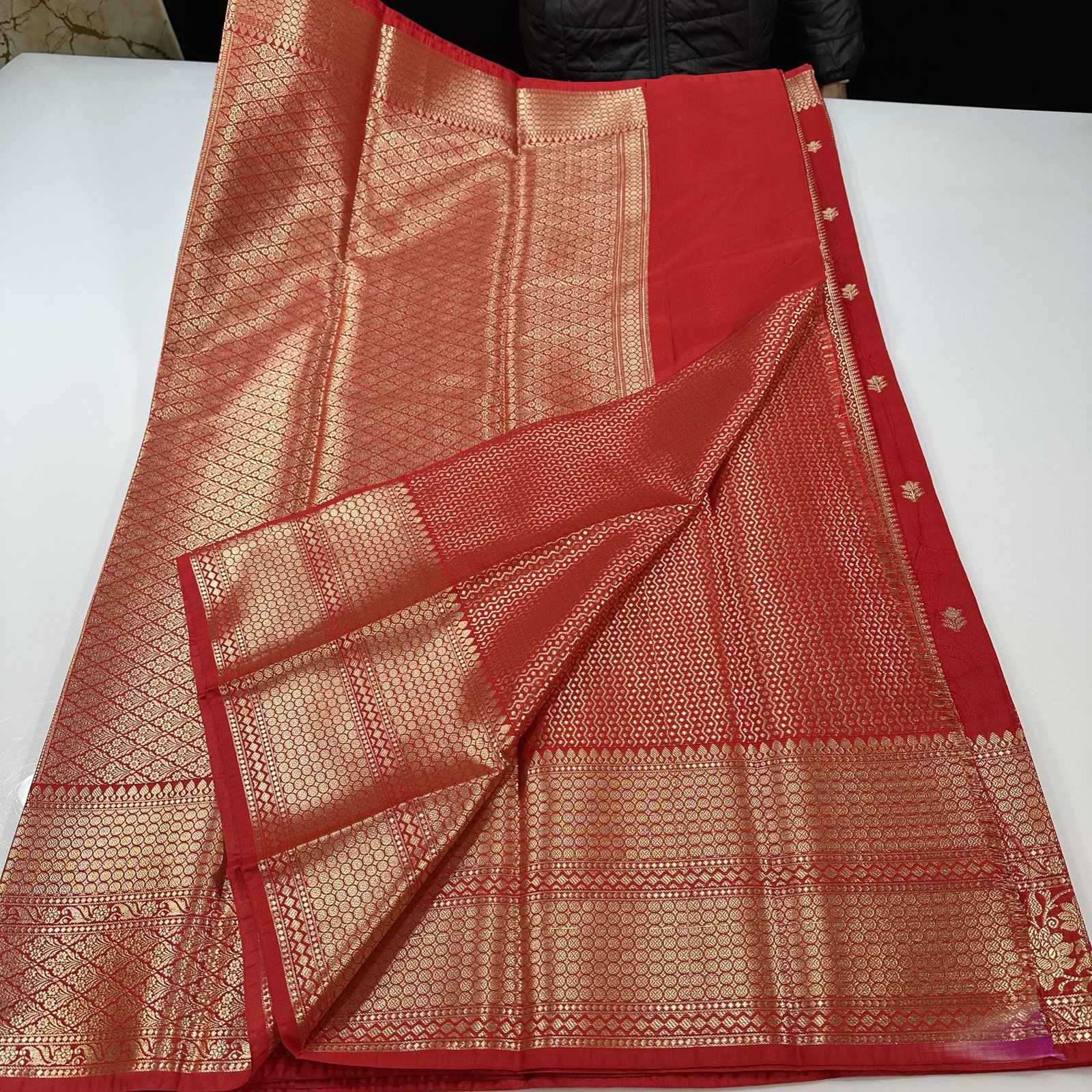 This Soft Banarasi Semi-Katan Silk Saree is a beautiful blend of comfort, tradition, and understated luxury. Woven in a rich self-shade, the saree carries a refined charm that feels graceful yet effortlessly wearable.
