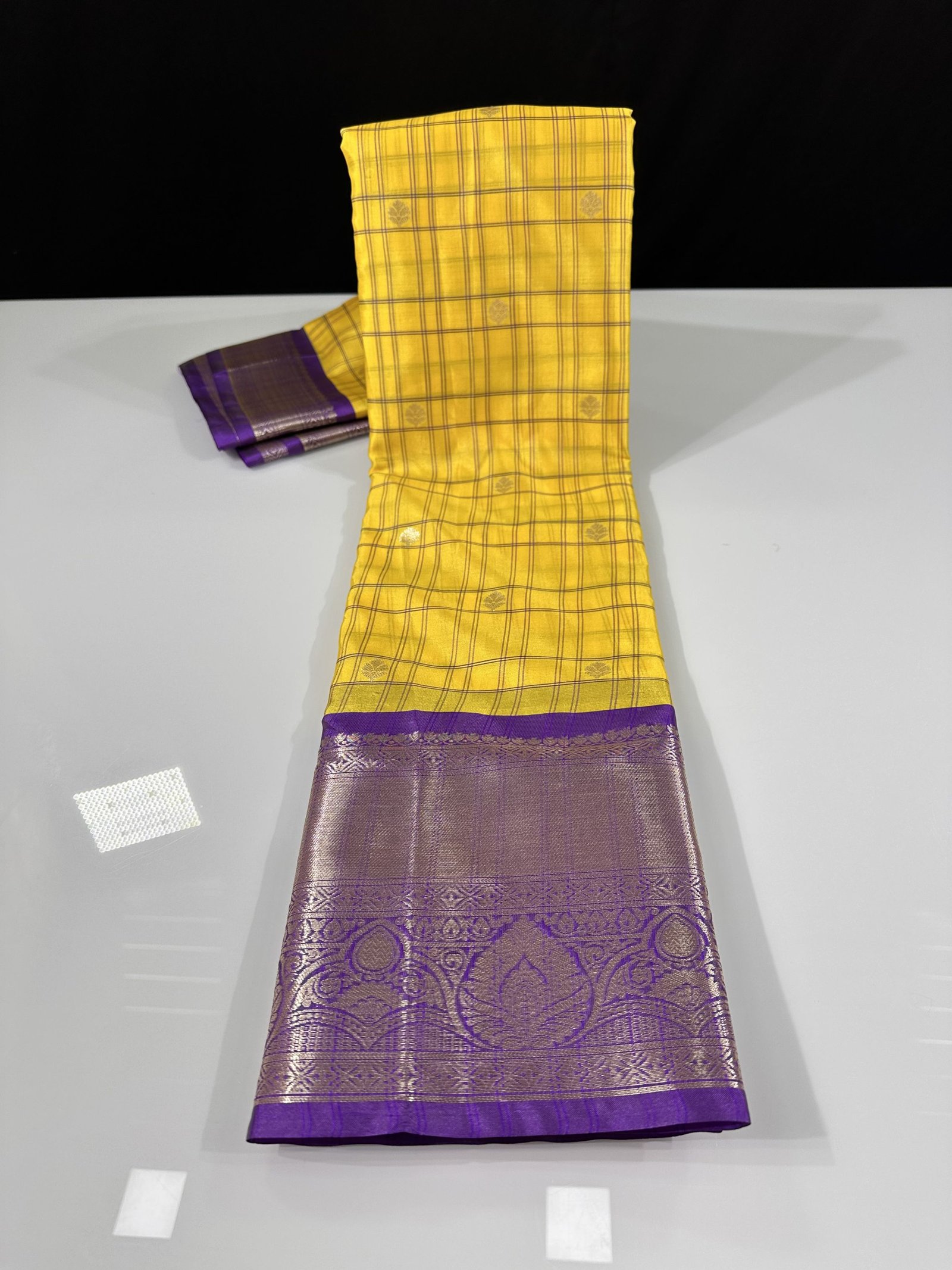 SOFT SEMI-GADWAL INSPIRED CHECKS WITH ZARI BUTY ALLOVER SAREE AND RICH WEAVING GRAND PALLU