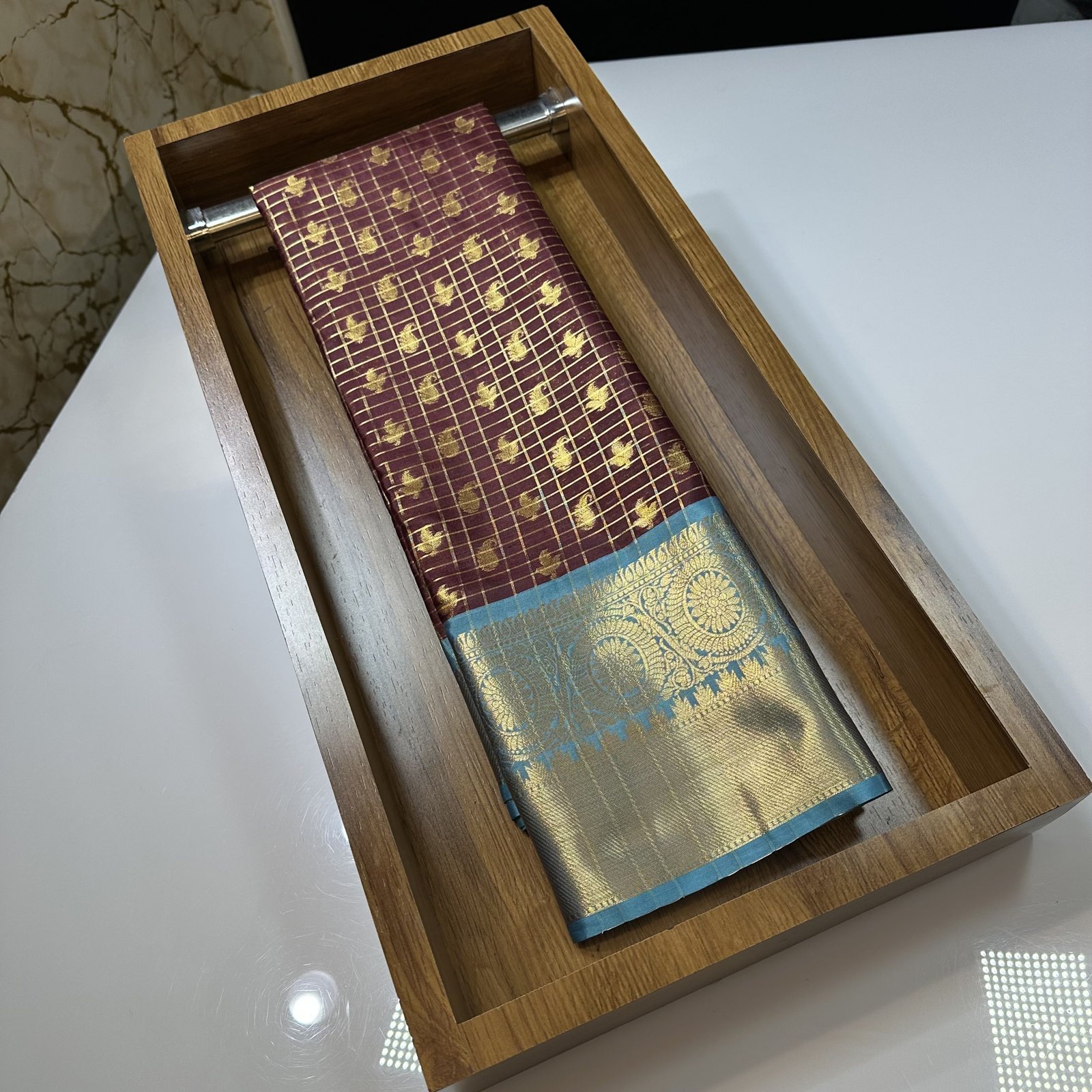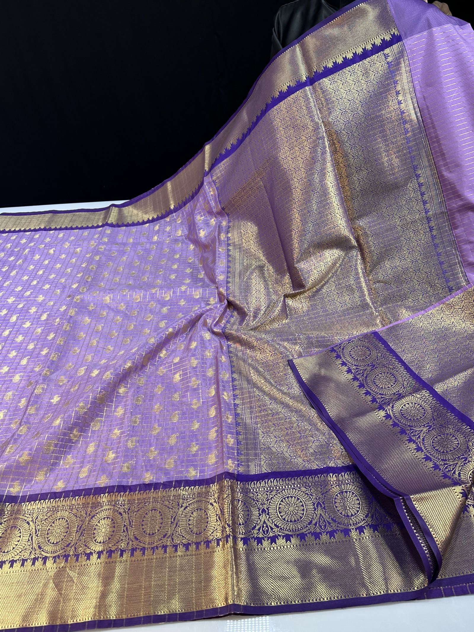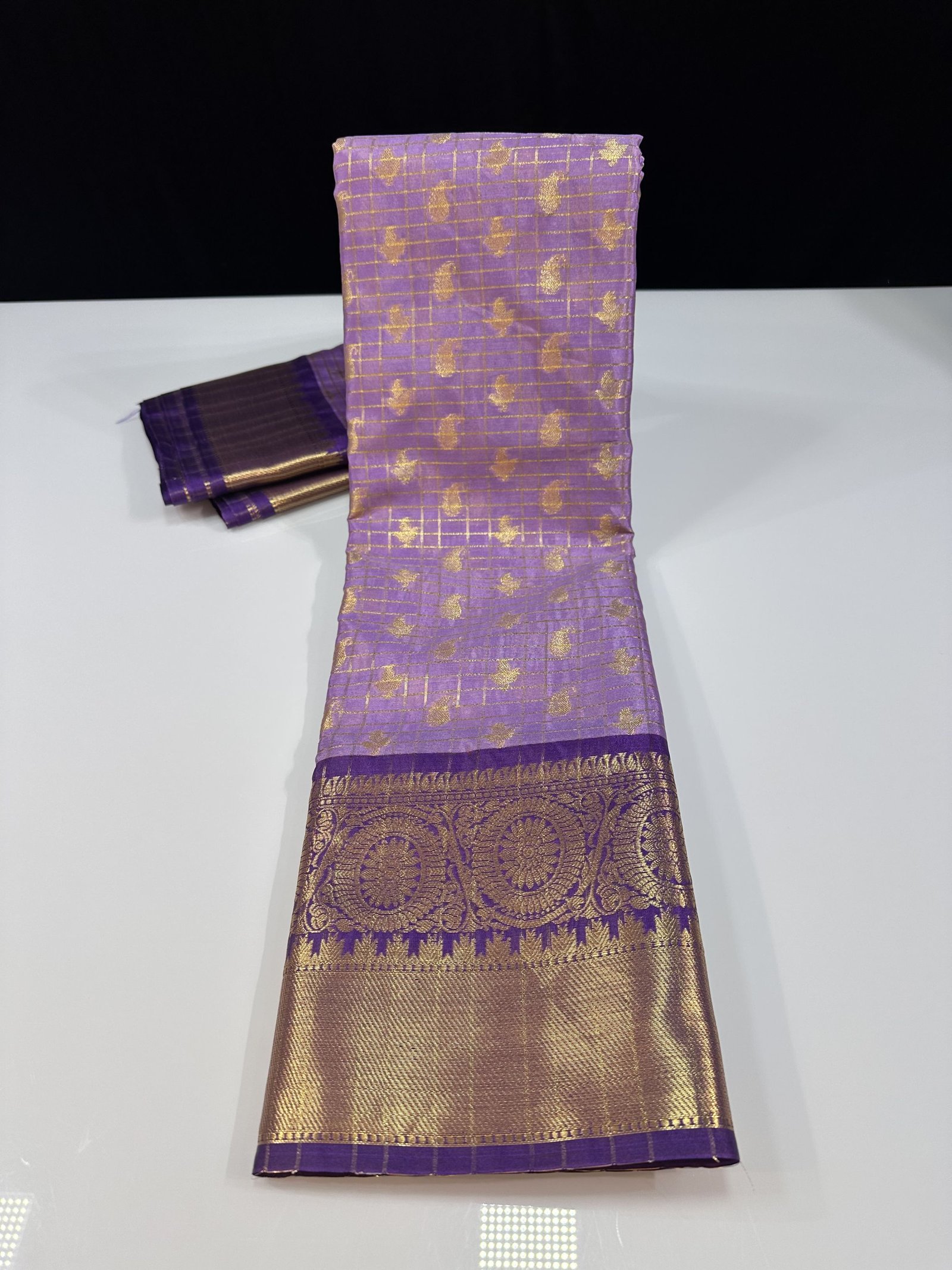 THE VINTAGE GADWAL PATTERN CHECKS AND BUTY INSPIRED SOFT SEMI-GADWAL SAREE WITH RICH BROCADE PALLU