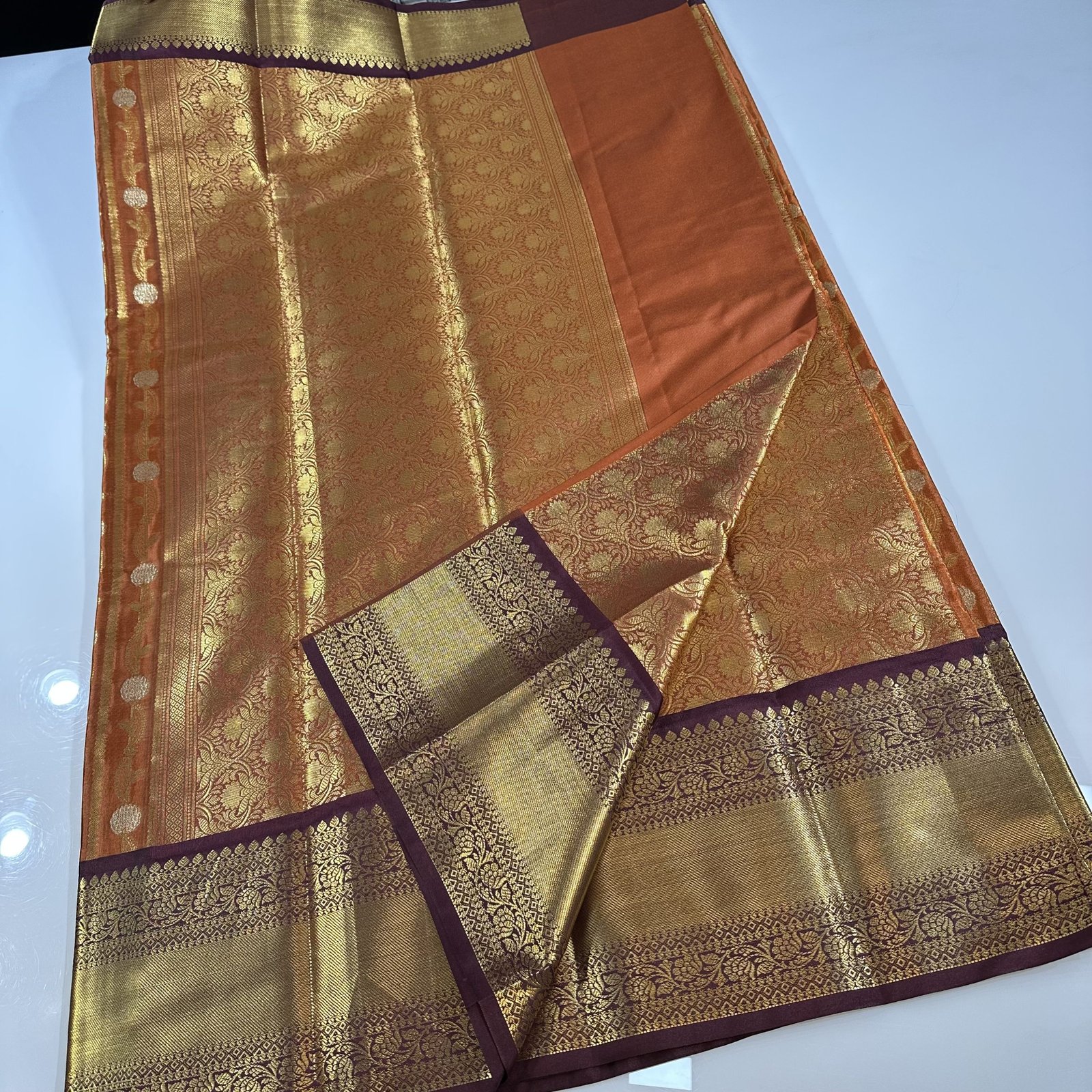 This premium soft Banarasi semi-silk brocade saree is a true expression of rich craftsmanship and timeless elegance. The body of the saree is adorned with an all-over Meenakari jaal pattern, intricately woven to create a vibrant yet refined surface that reflects classic Banarasi artistry.