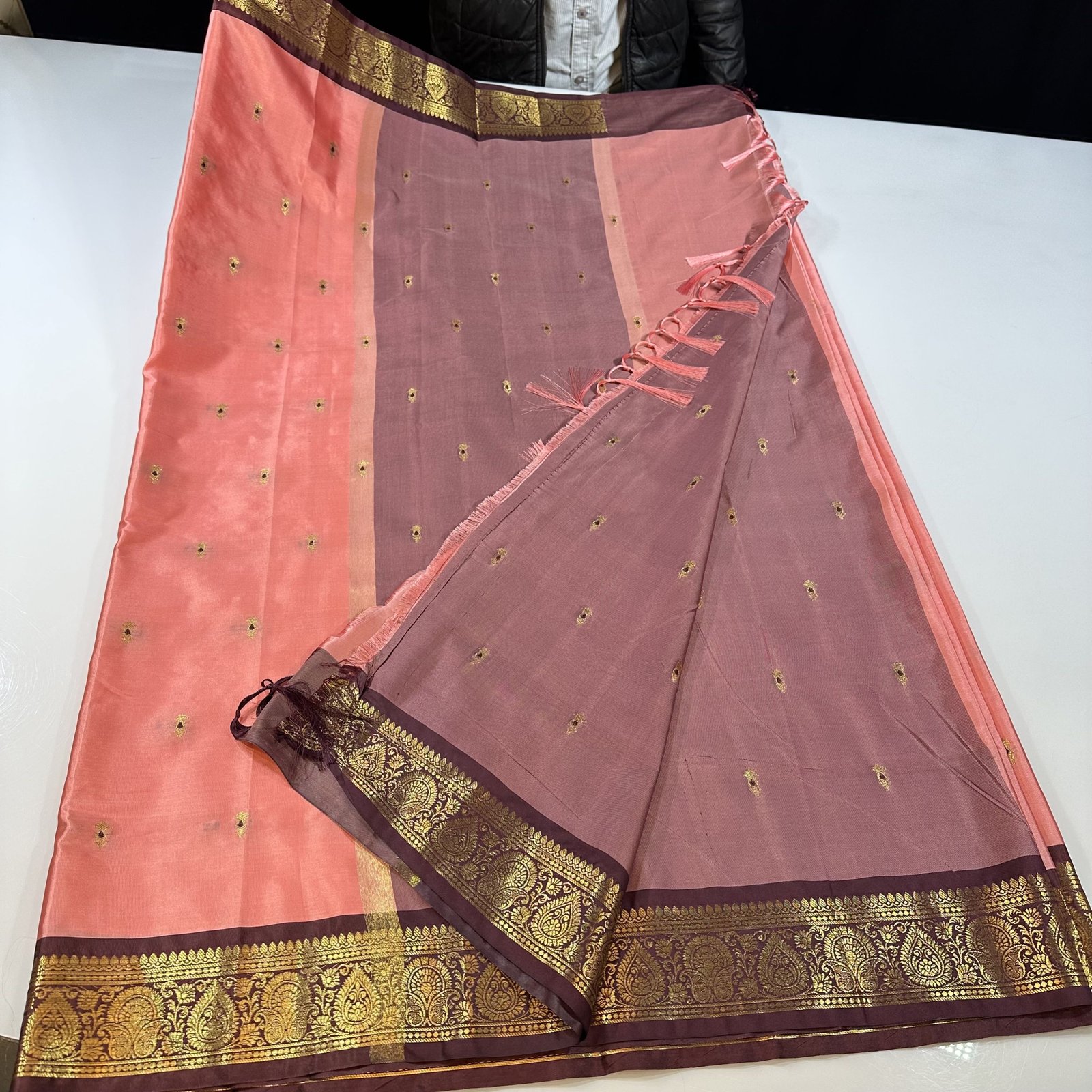 A graceful soft Banarasi semi-silk saree crafted for effortless elegance. The fabric is exceptionally soft, lightweight, and beautifully body-hugging, making it perfect for all-day comfort with a rich drape. The body is adorned with intricate zari weaving meenakari motifs that add a touch of traditional charm and subtle shimmer. Finished with a delicate small contrast weaving border, this saree comes in bright, vibrant shades that make it a stunning choice for festive and special occasions. ✨