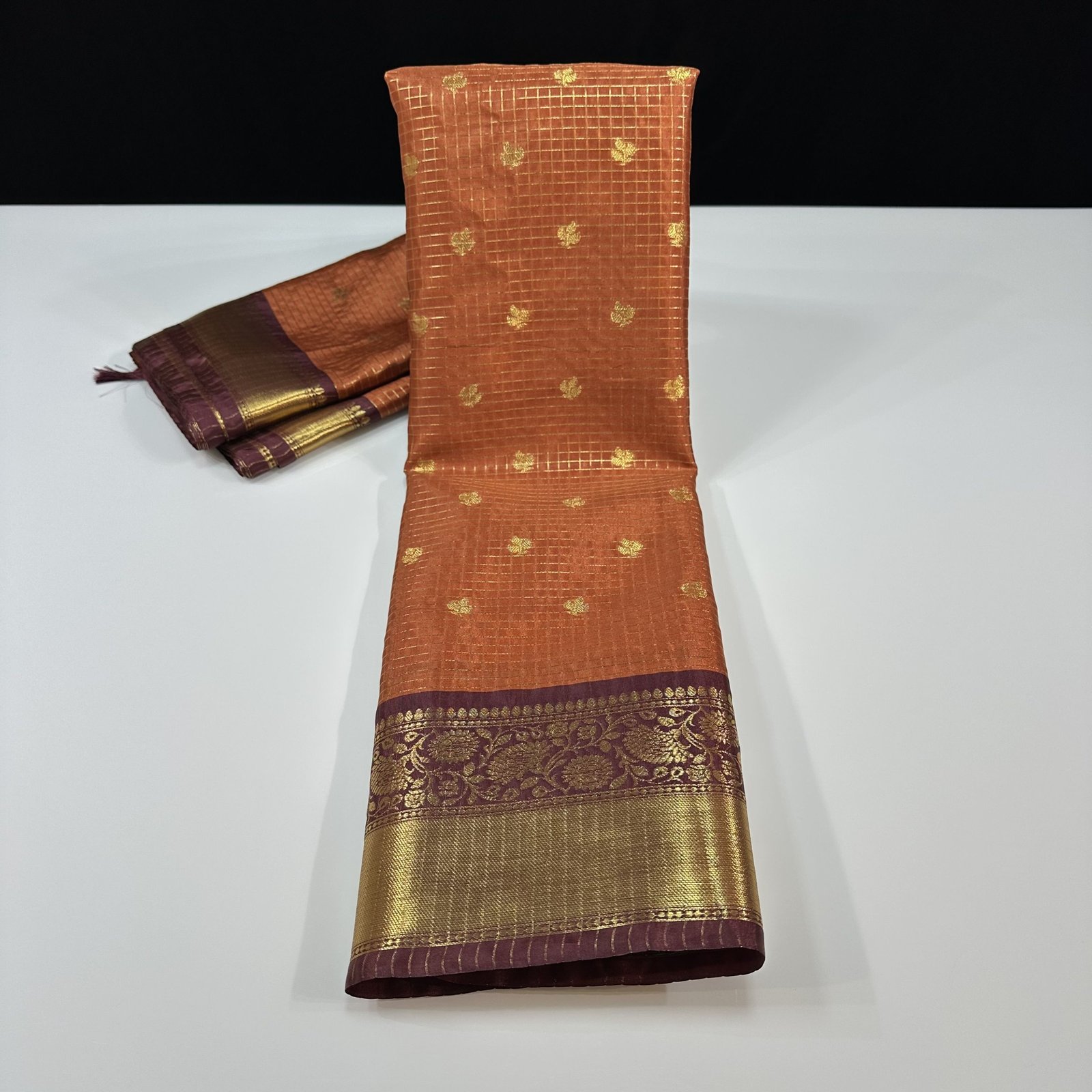 THE MOST VIRAL SEMI-GADWAL INSPIRED SAREE IN THE TRENDING RUST SHADE