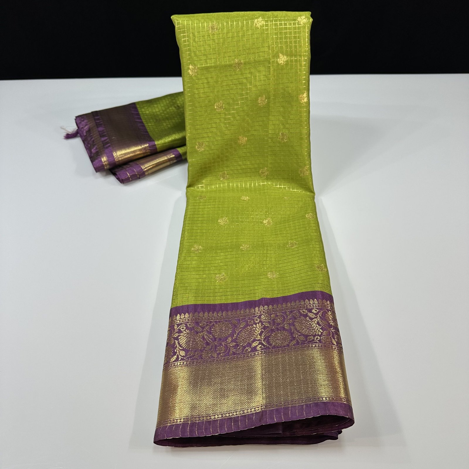 Soft semi-Gadwal check saree in green shade
