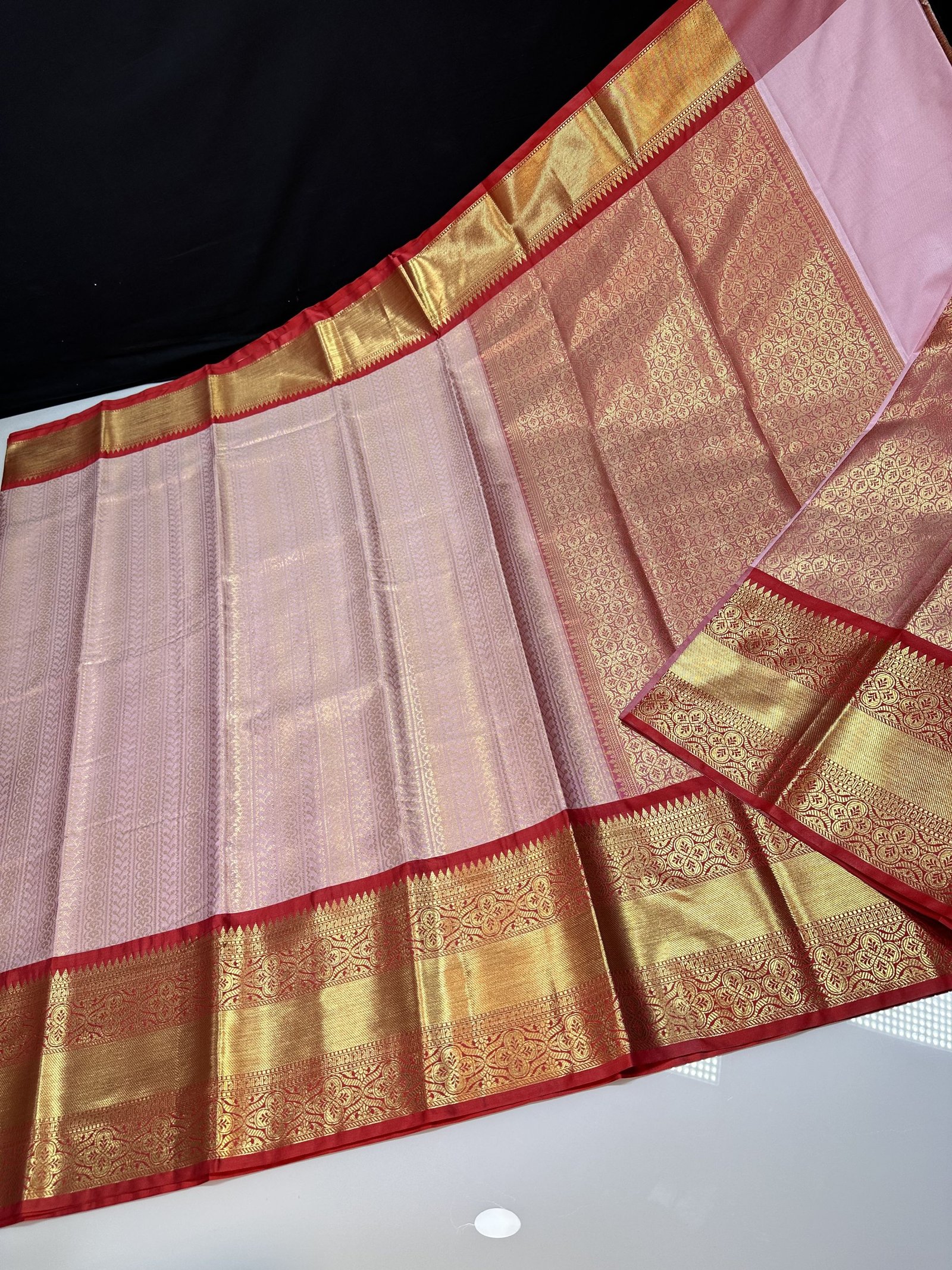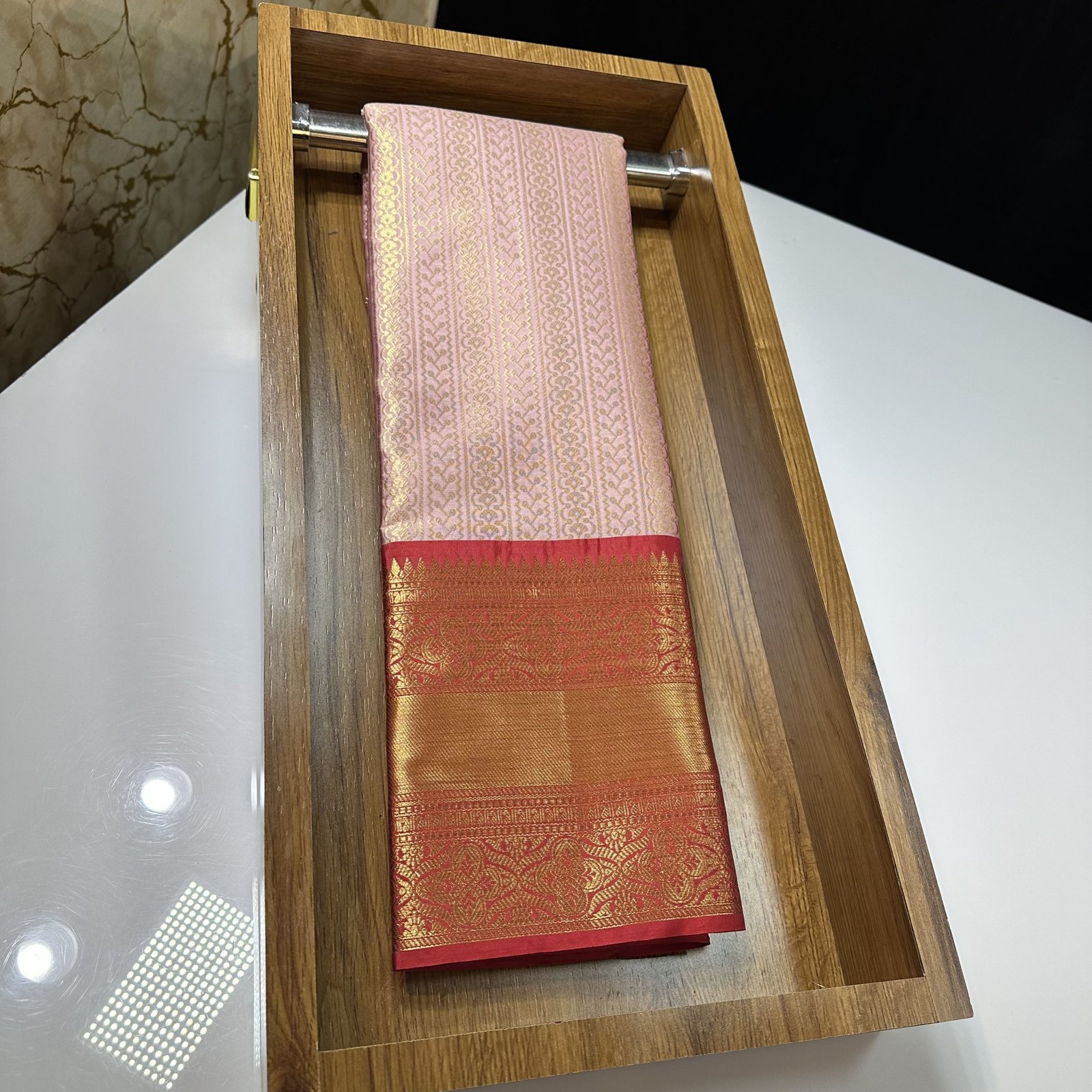 Soft semi-Kanchi brocade saree in the most trending pink-red combination