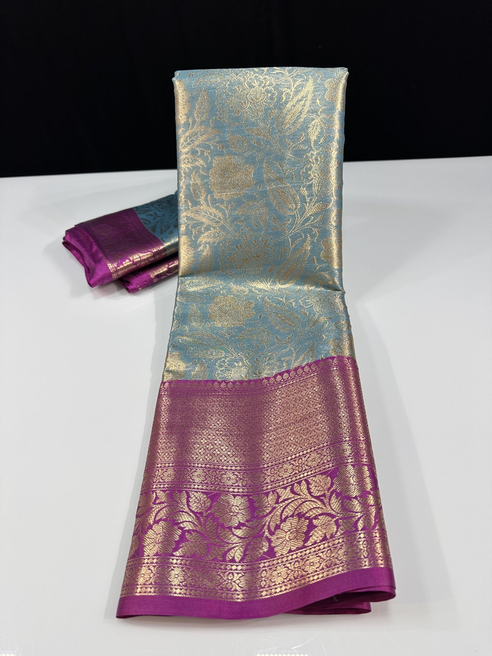 0 Review Of Product SKY BLUE TISSUE BROCADE SAREE