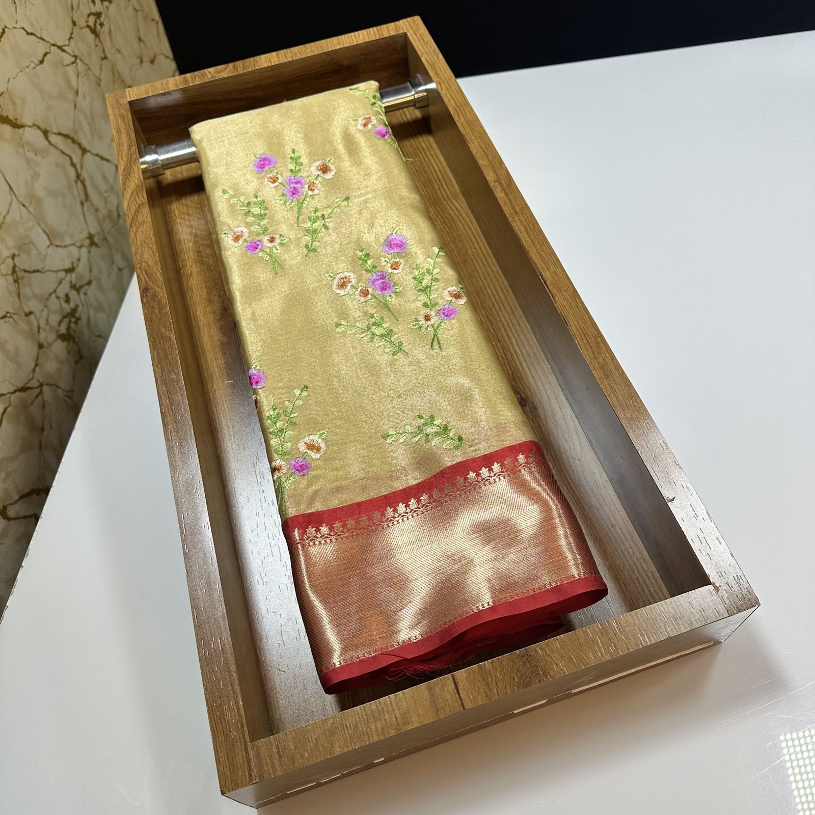THE EXCLUSIVE SOFT BANARASI TISSUE SILK SAREE WITH MEENAKARI EMBROIDERY WORK BUTA ALLOVER SAREE