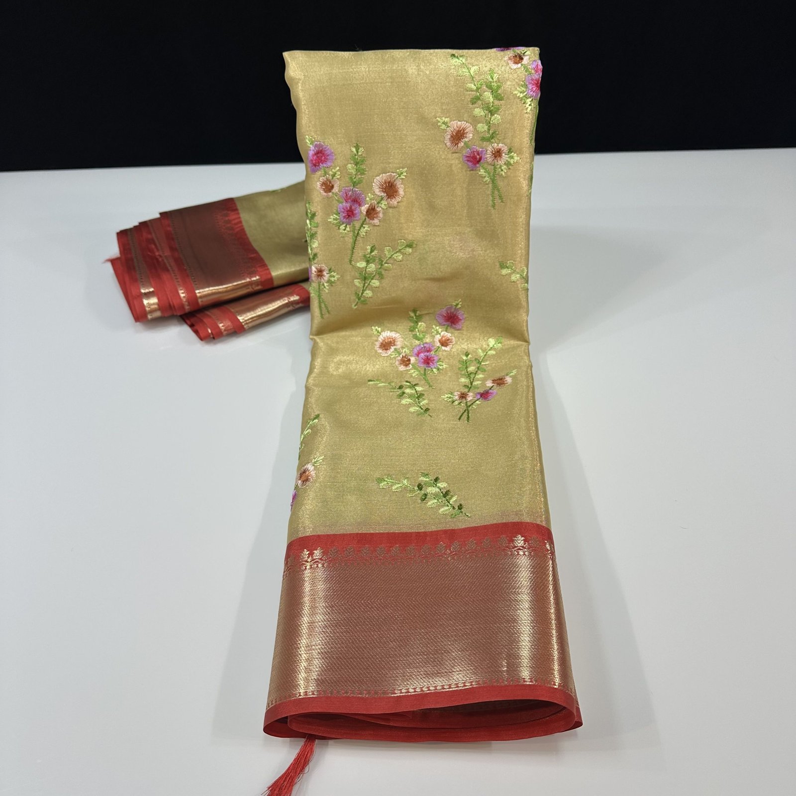 THE EXCLUSIVE SOFT BANARASI TISSUE SILK SAREE WITH MEENAKARI EMBROIDERY WORK BUTA ALLOVER SAREE