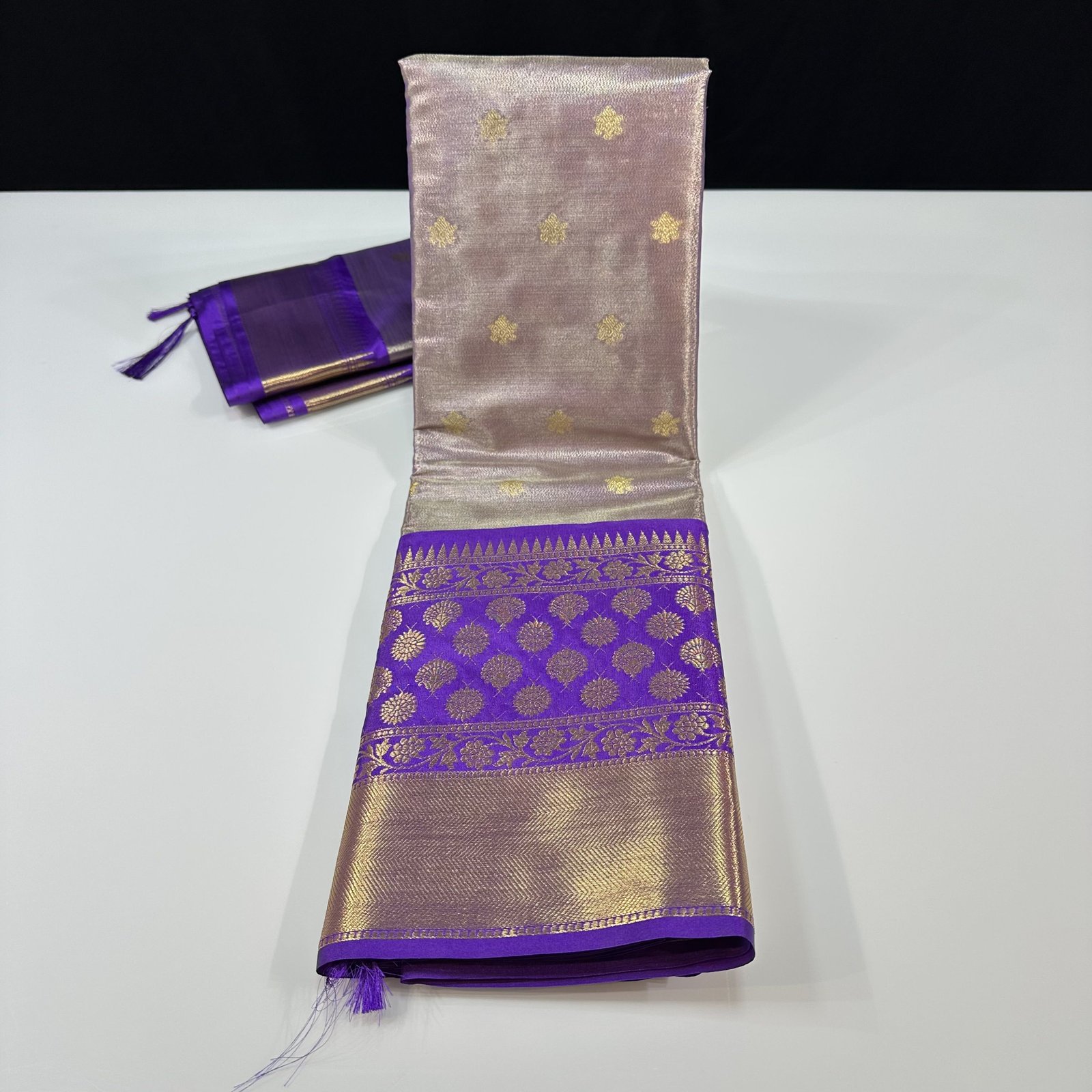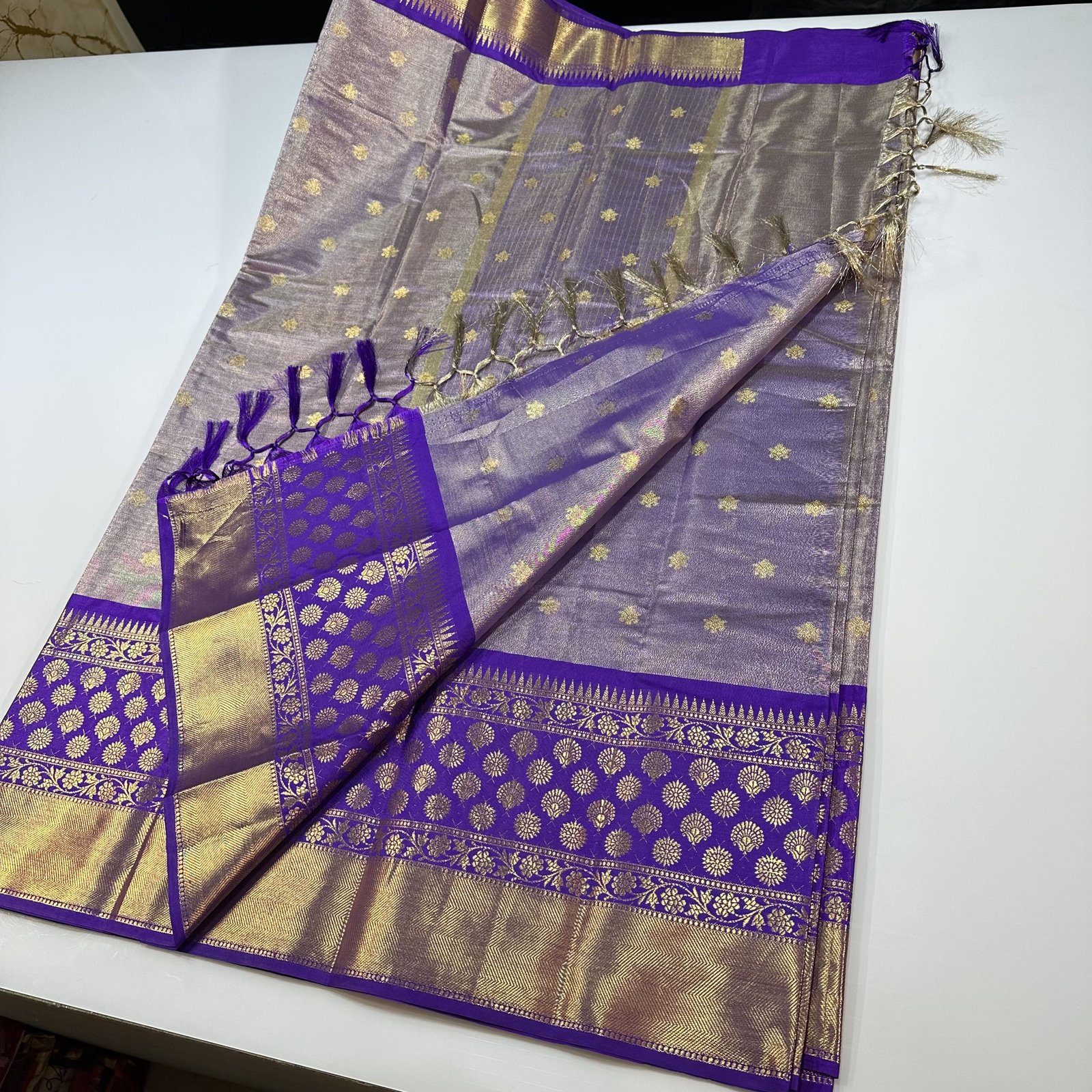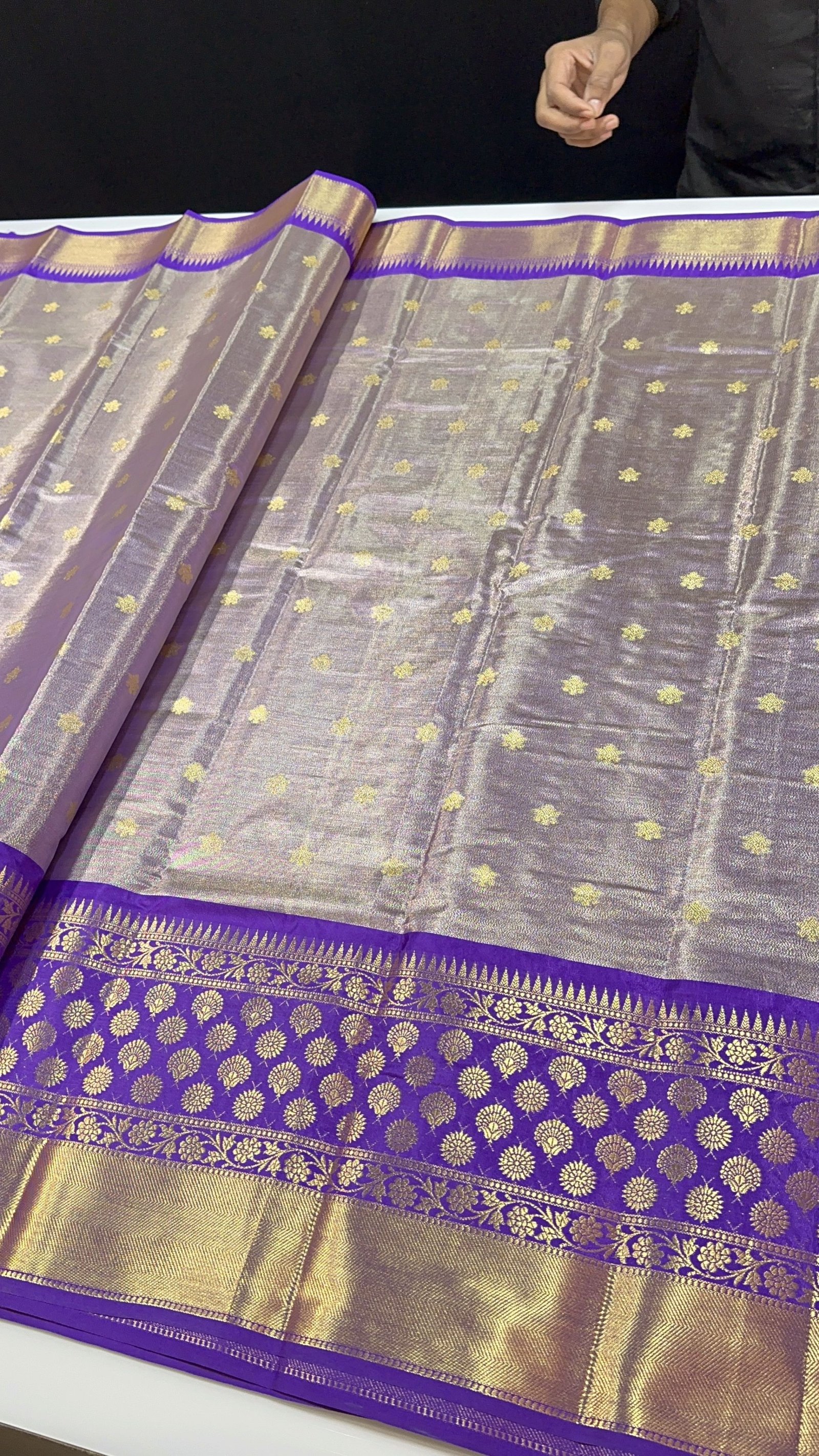 SOFT BANARASI TISSUE SILK SAREE IN PREMIUM FINE SHINY FINISH HAVING SELF SHADE WEAVING BORDER