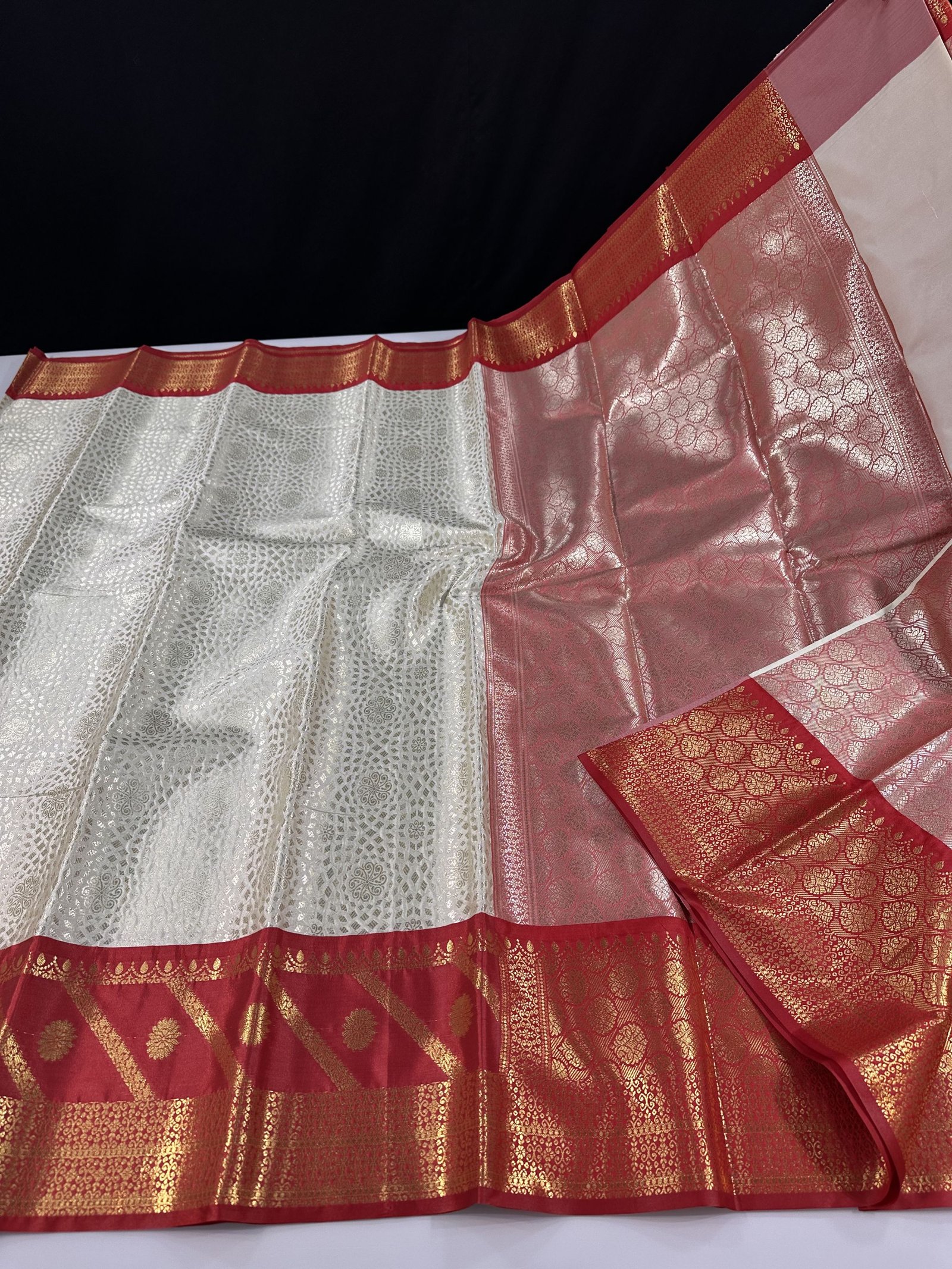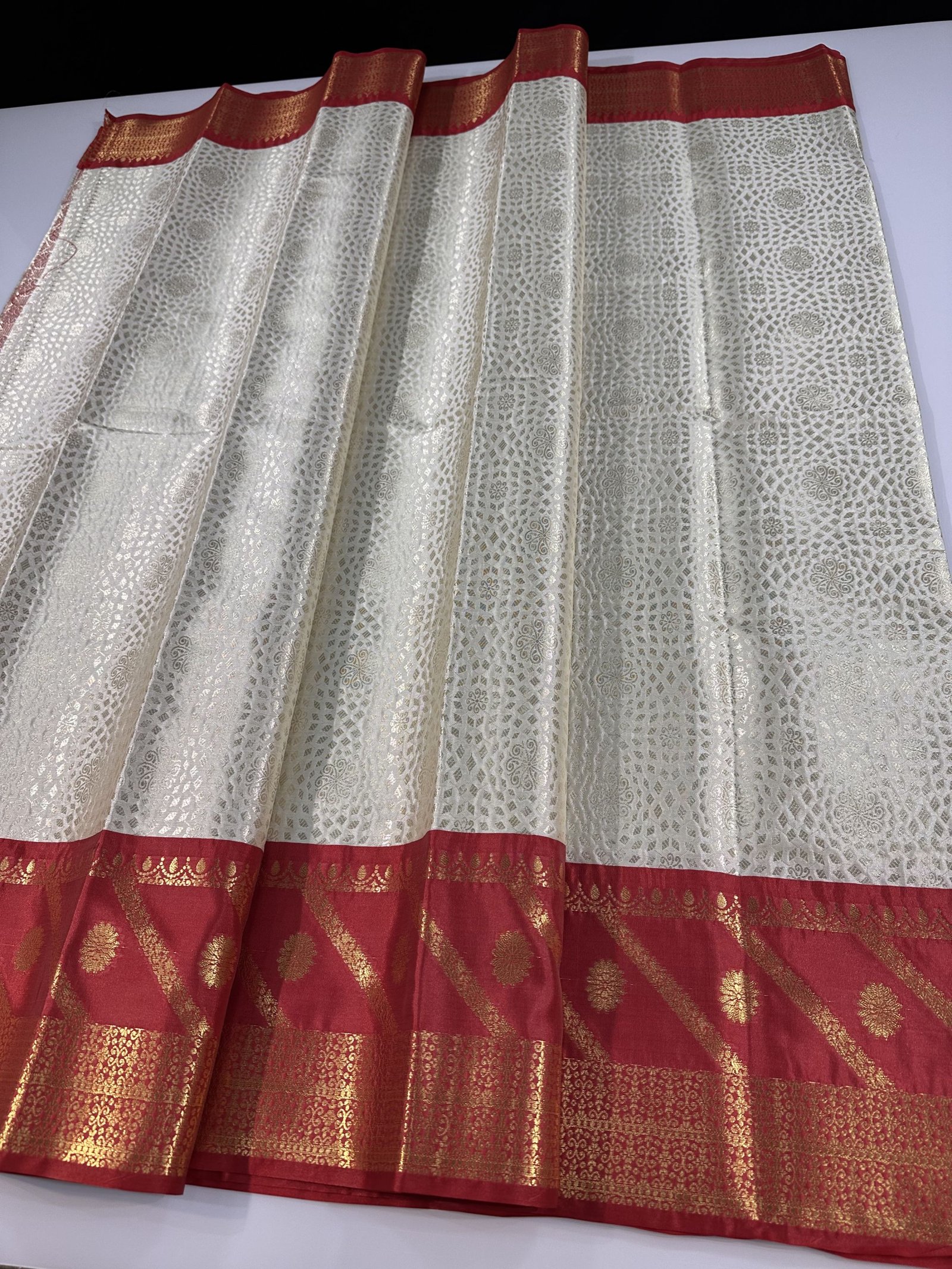 Bringing you all the premium soft semi-silk brocade saree in Kanchi inspired patterns