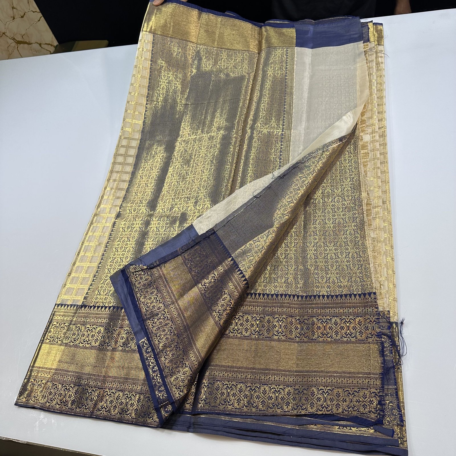 CREAM X BLUE CHOWKDI