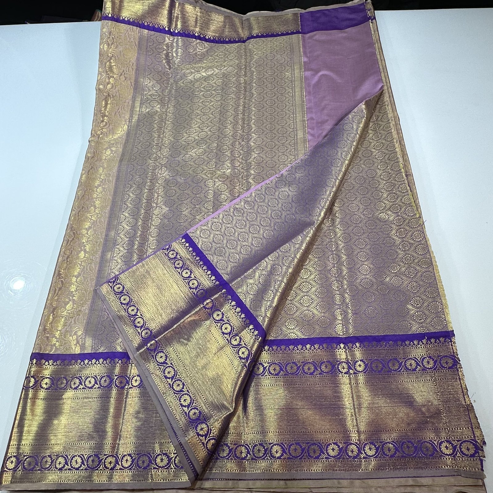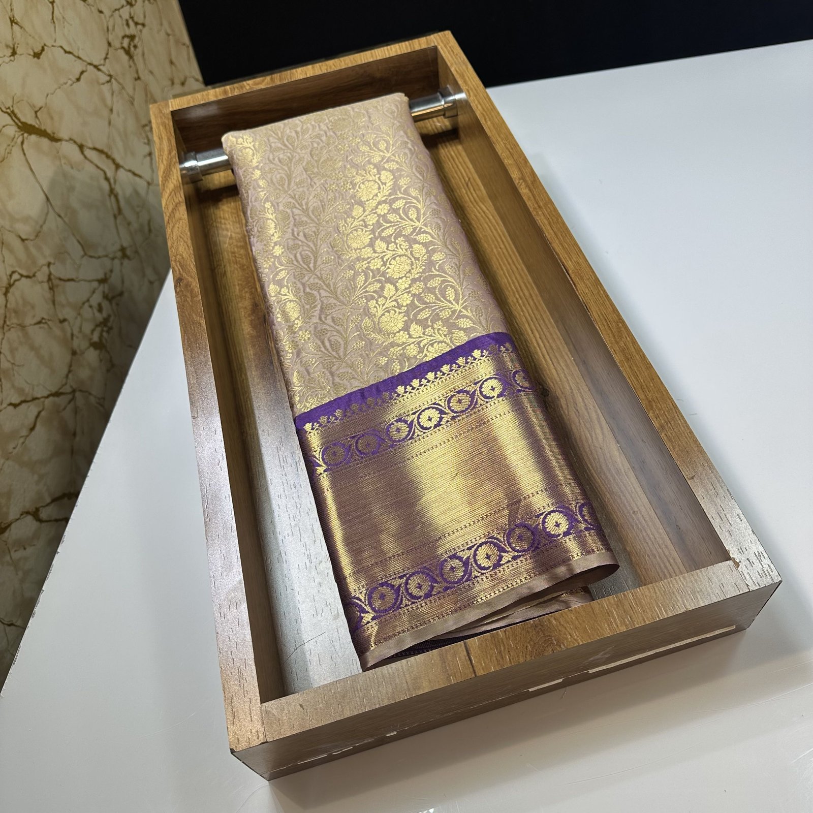 Gracefully blending tradition with thoughtful design innovation, this soft Banarasi semi-silk brocade saree is crafted for refined festive and ceremonial wear. The fabric carries a gentle sheen with a smooth, comfortable drape, making it ideal for long celebrations while maintaining the richness of Banarasi brocade artistry.