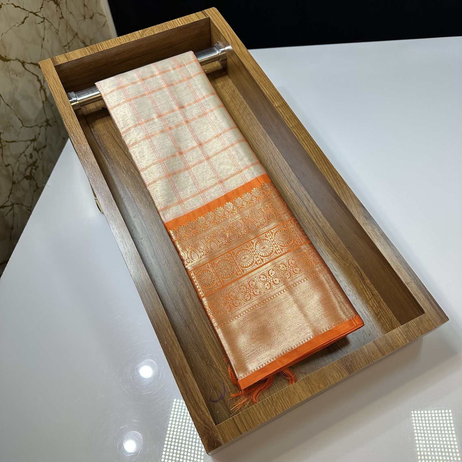SSOFT BANARASI TISSUE SILK SAREE IN RESHAM WEAVING CONTRAST CHECKS ALLOVER SAREE WITH KANCHI BORDER