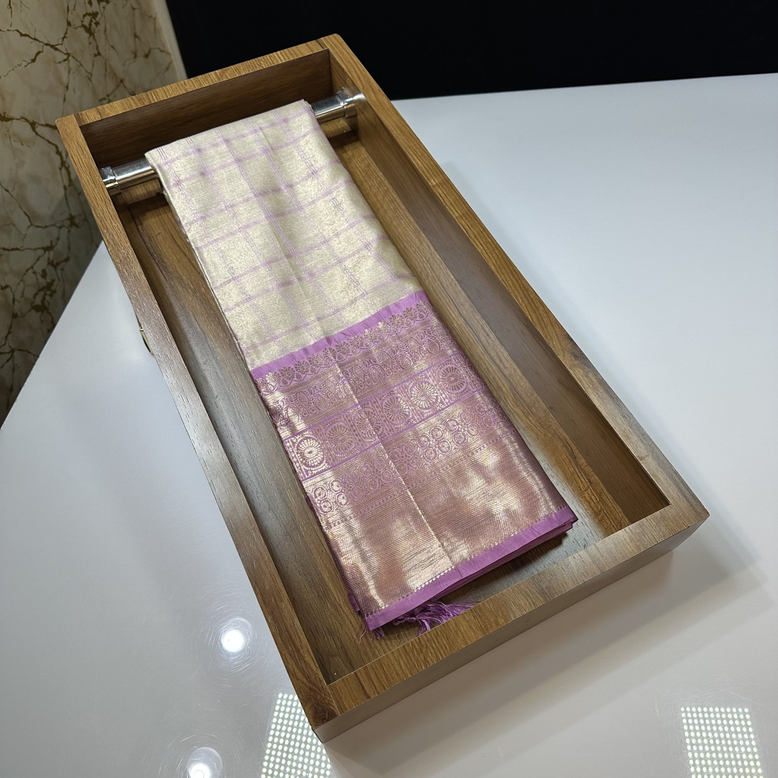 SOFT BANARASI TISSUE SILK SAREE WITH RESHAM WEAVING CHECKS SAREE HAVING CONTRAST WEAVING KANCHI BORDER