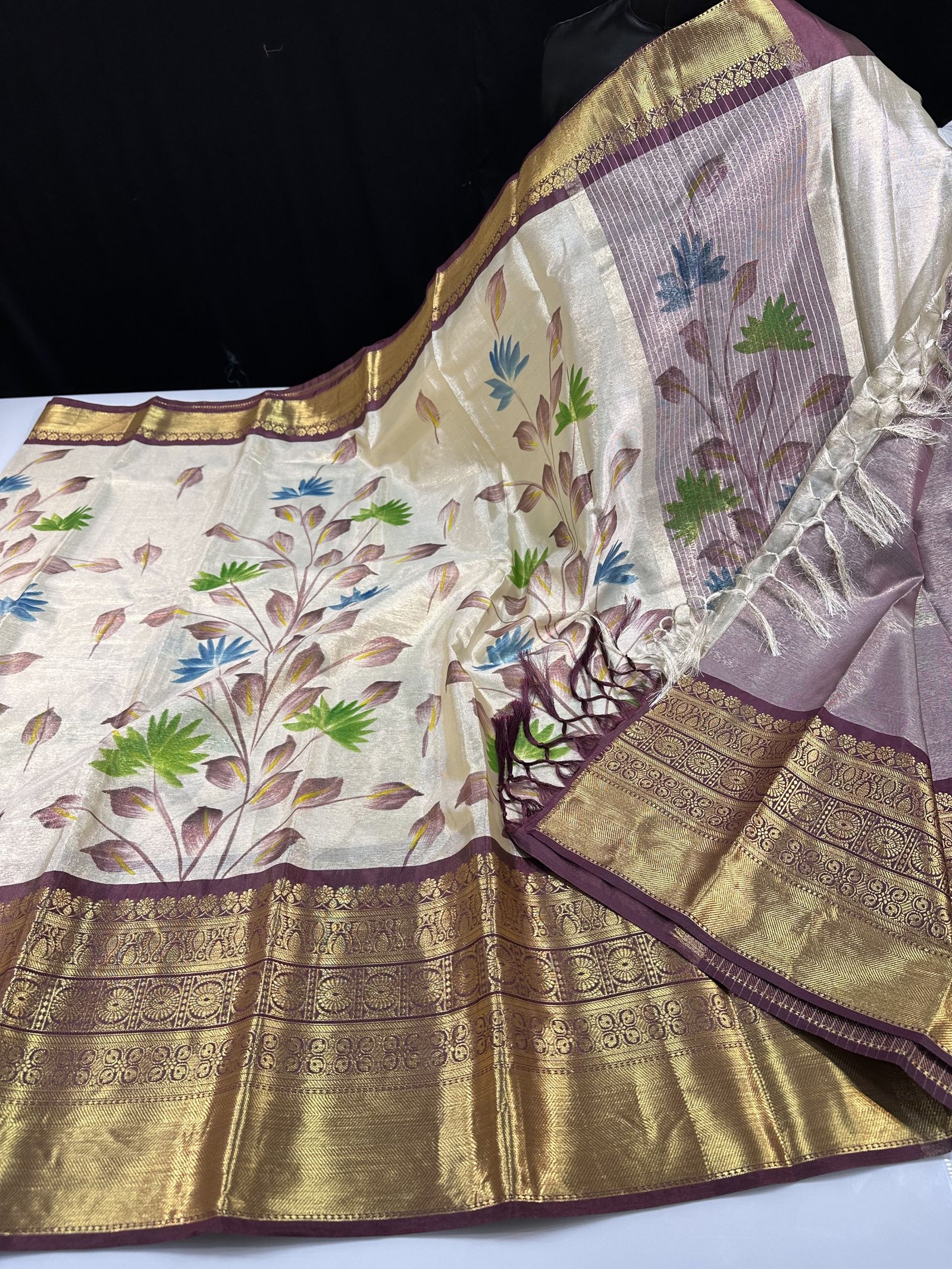 HAND PAINTED SOFT BANARASI TISSUE SILK SAREE WITH KANCHI BORDER