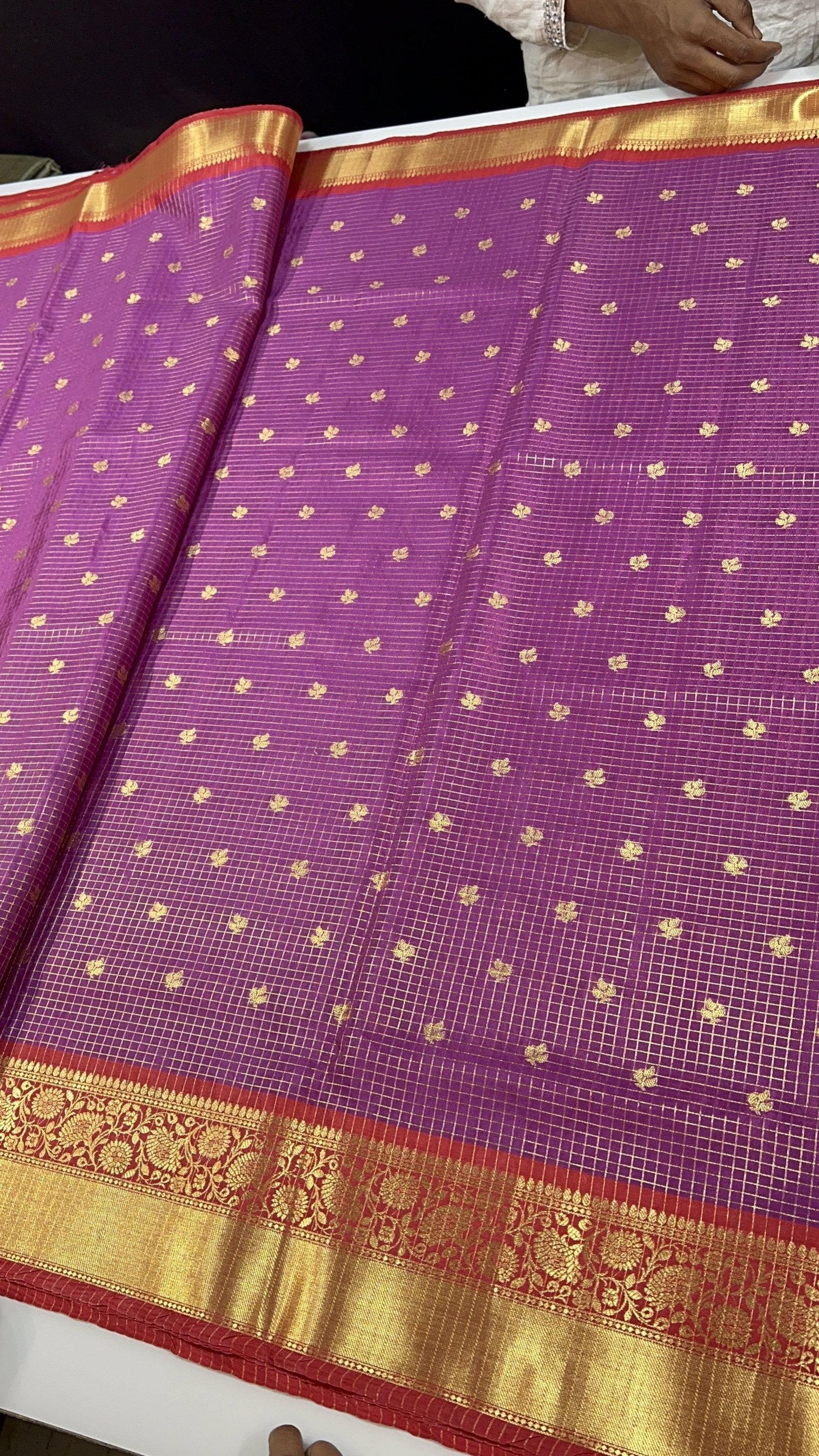 THE VIRAL VINTAGE SAREE NOW AVAILABLE IN 15 SHADES HAVING ZARI WEAVING CHECKS PATTERN WITH ZARI BUTY ALLOVER SAREE