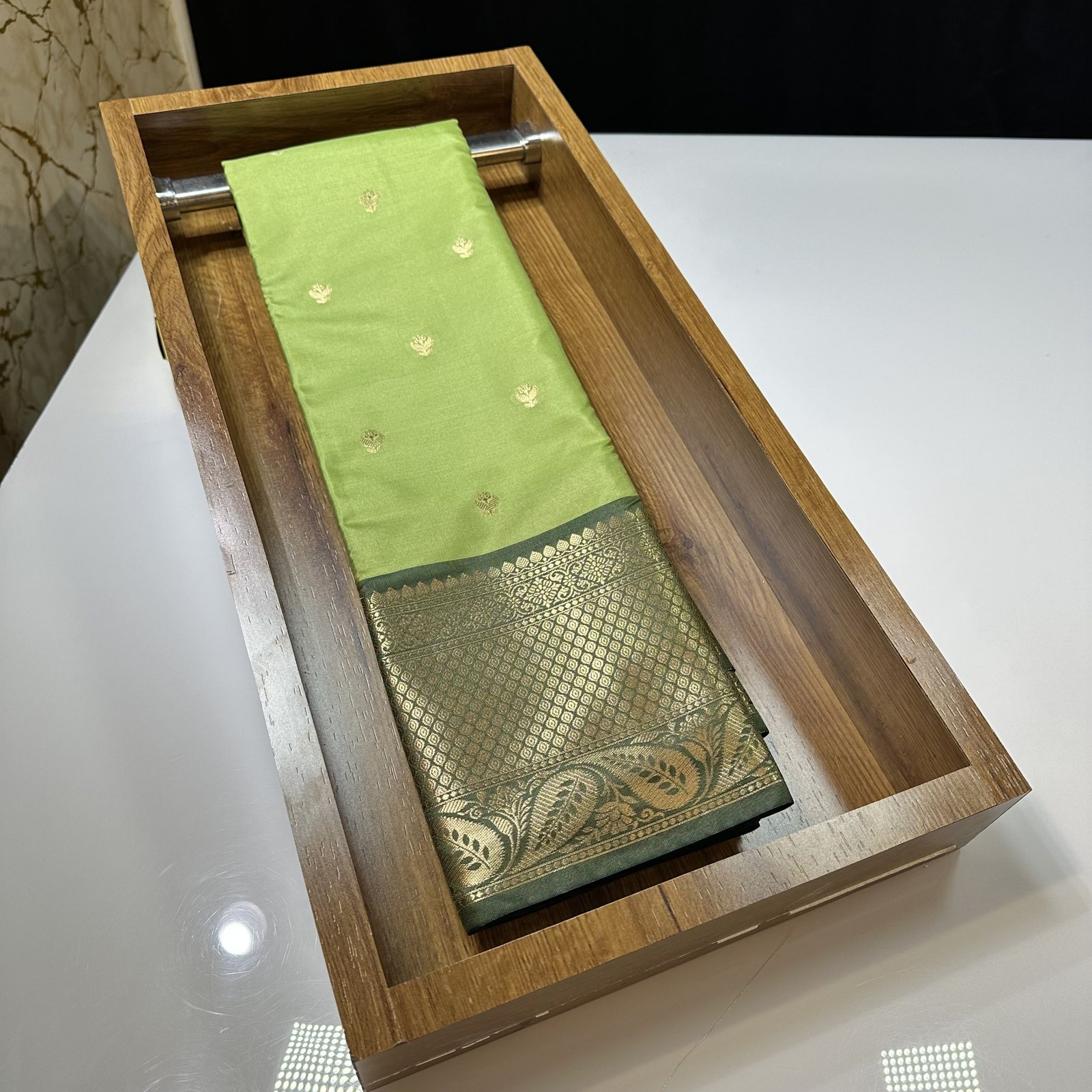 SOFT BANARASI SEMI-KATAN SILK SAREE WITH TRADITIONAL KHADDI BUTY WEAVING ALLOVER SAREE