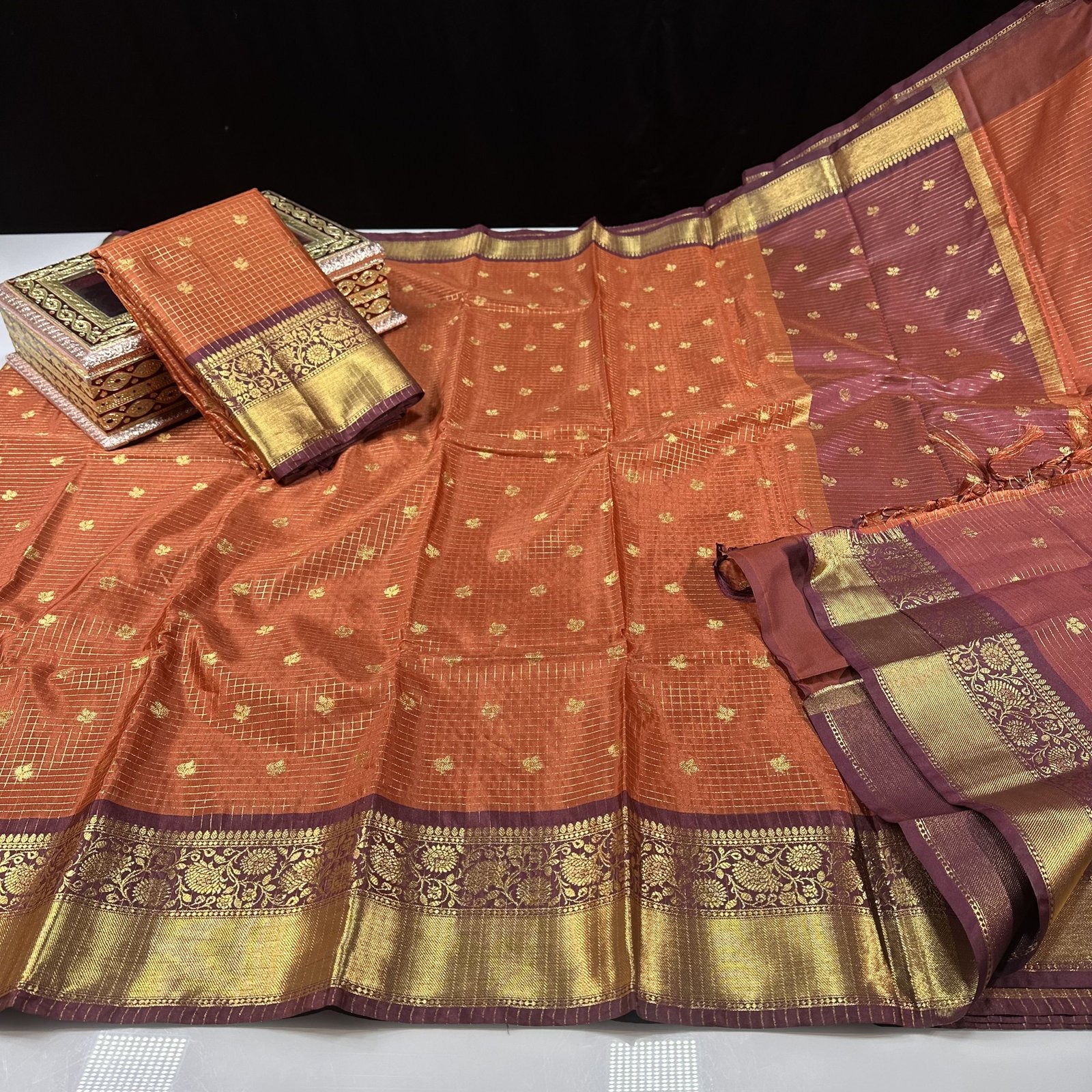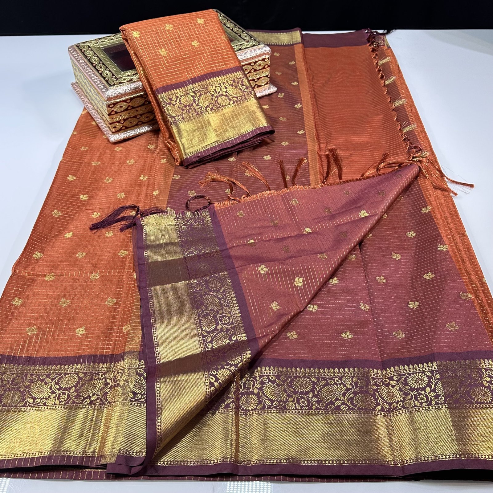 THE MOST VIRAL SEMI-GADWAL INSPIRED SAREE IN THE TRENDING RUST SHADE