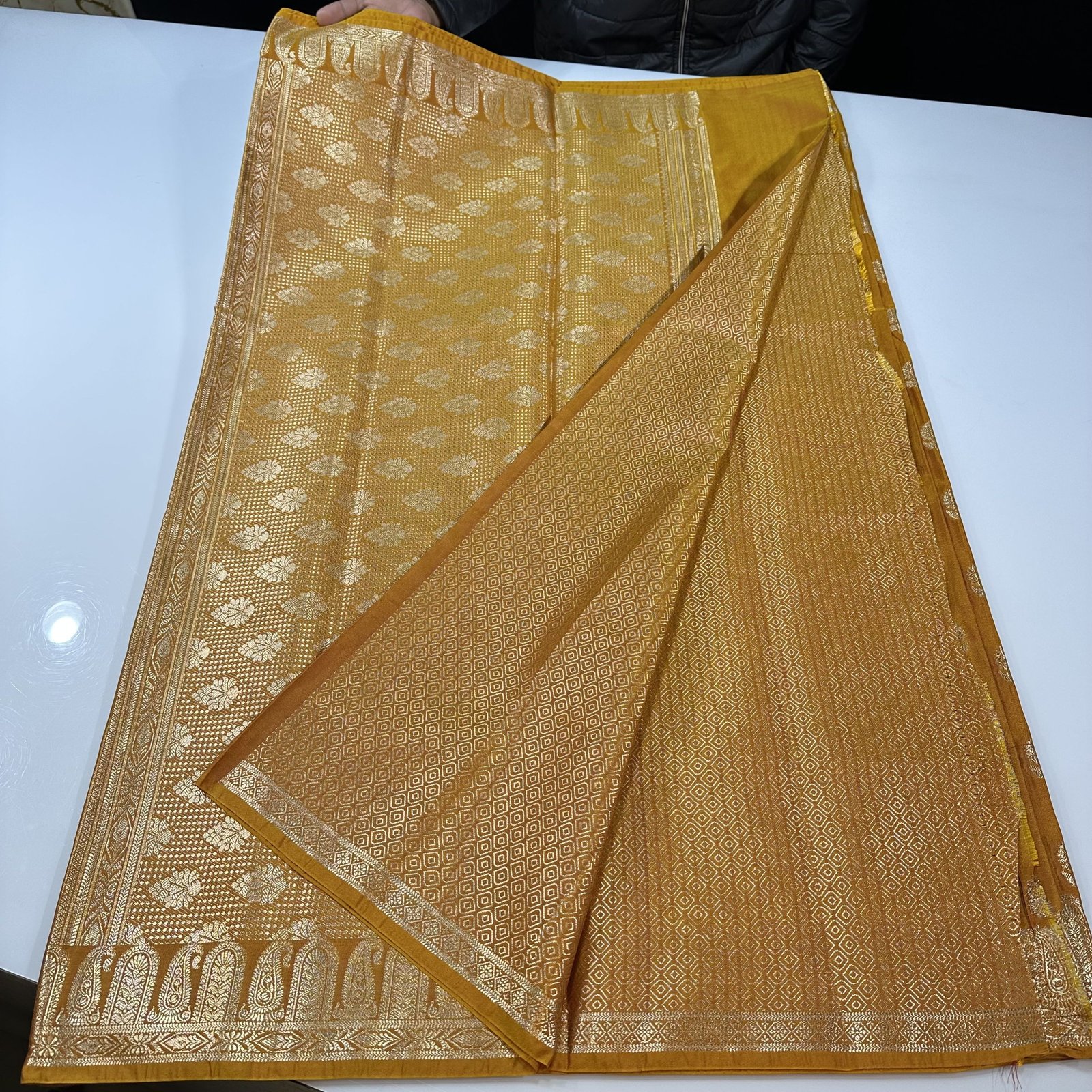 Drape yourself in timeless elegance with this soft Banarasi semi-Katan silk saree, crafted to reflect the richness of traditional Banarasi artistry ✨ The body of the saree is beautifully adorned with intricate zari weaving motifs spread gracefully all over, adding a subtle shimmer and royal charm with every movement. The fine semi-katan silk texture makes it incredibly soft, lightweight, and comfortable to carry — perfect for long celebrations without compromising on style.