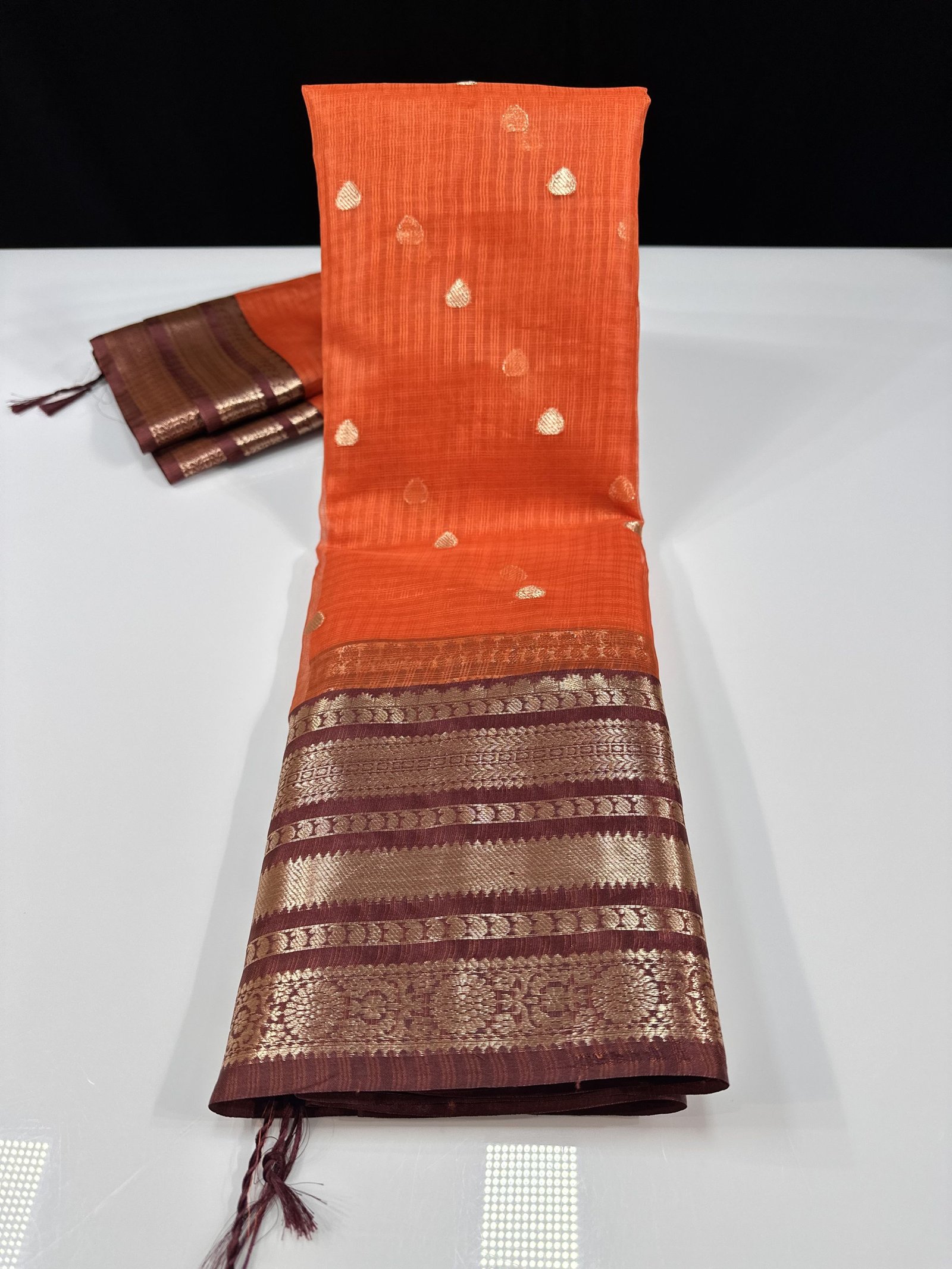SOFT SEMI-SILK SAREE INSPIRED FROM VINTAGE CHECKS PATTERN OF MOONGA SAREES
