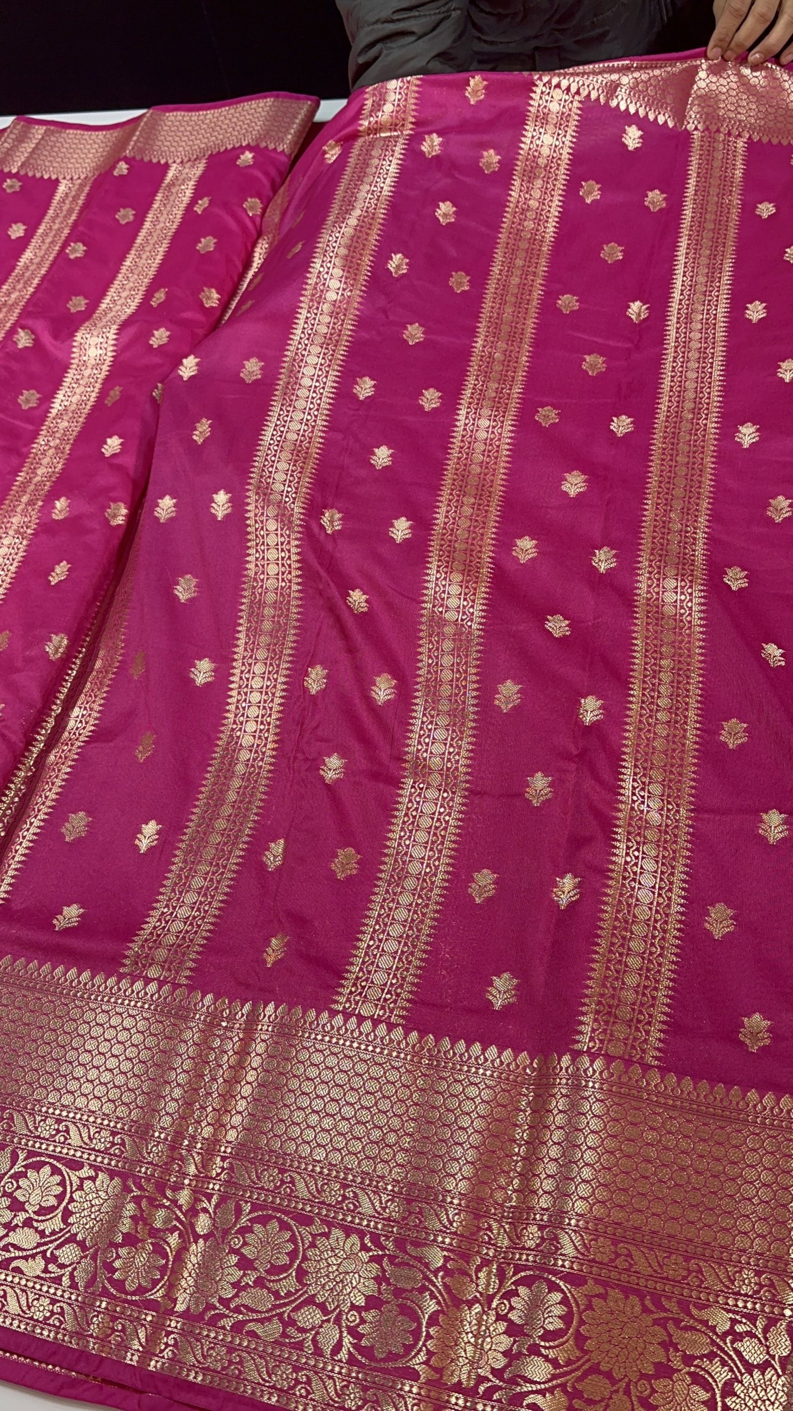The highlight of the saree is its grand and richly woven pallu, designed to make a statement with traditional Banarasi finesse. It adds depth, richness, and festive grandeur, making the saree perfect for both special occasions and graceful everyday elegance.