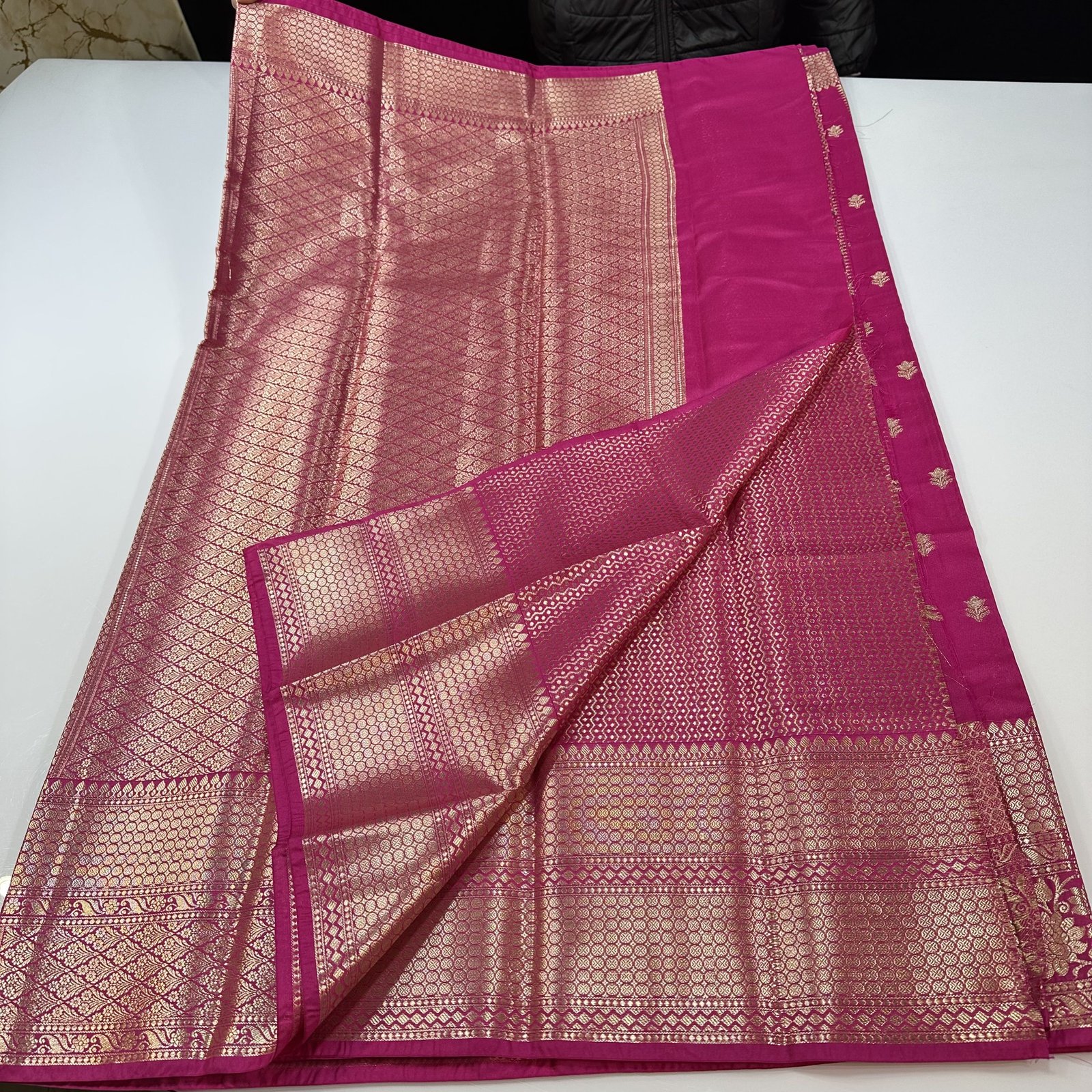 This Soft Banarasi Semi-Katan Silk Saree is a beautiful blend of comfort, tradition, and understated luxury. Woven in a rich self-shade, the saree carries a refined charm that feels graceful yet effortlessly wearable.