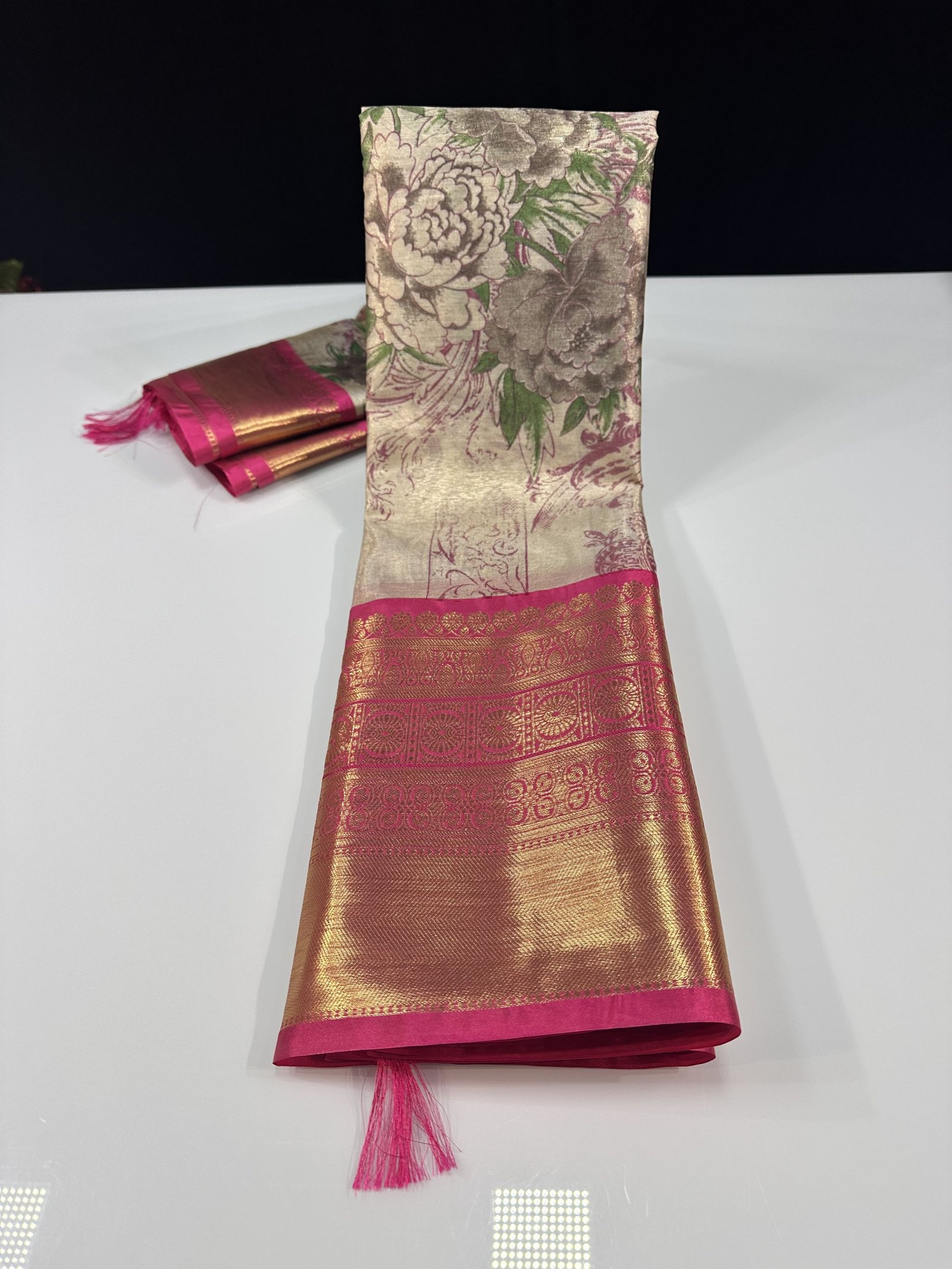 SOFT BANARASI TISSUE SILK SAREE WITH DIGITAL PRINTED JAAL ALLOVER SAREE
