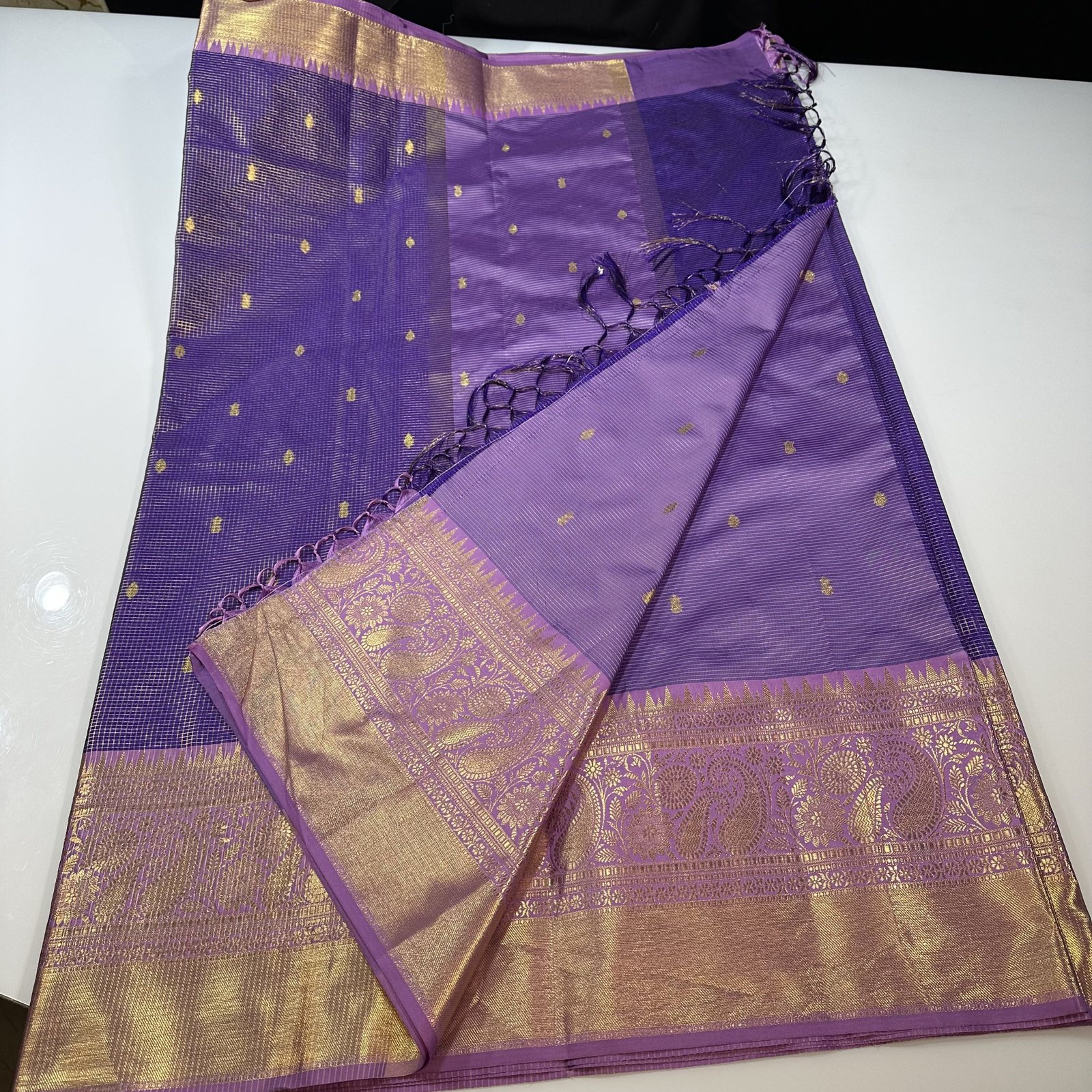 A graceful blend of nostalgia and craftsmanship, this vintage-inspired mini checks saree brings timeless charm to contemporary dressing. The finely woven mini check pattern lends a subtle texture and classic appeal across the body, evoking old-world elegance with a refined finish. Accentuating the saree is a beautifully contrast-woven Kanchi border, crafted with traditional precision, adding depth, richness, and a striking frame to the drape. Perfect for those who appreciate heritage aesthetics with understated sophistication, this saree is ideal for festive occasions, cultural gatherings, and elegant day wear.