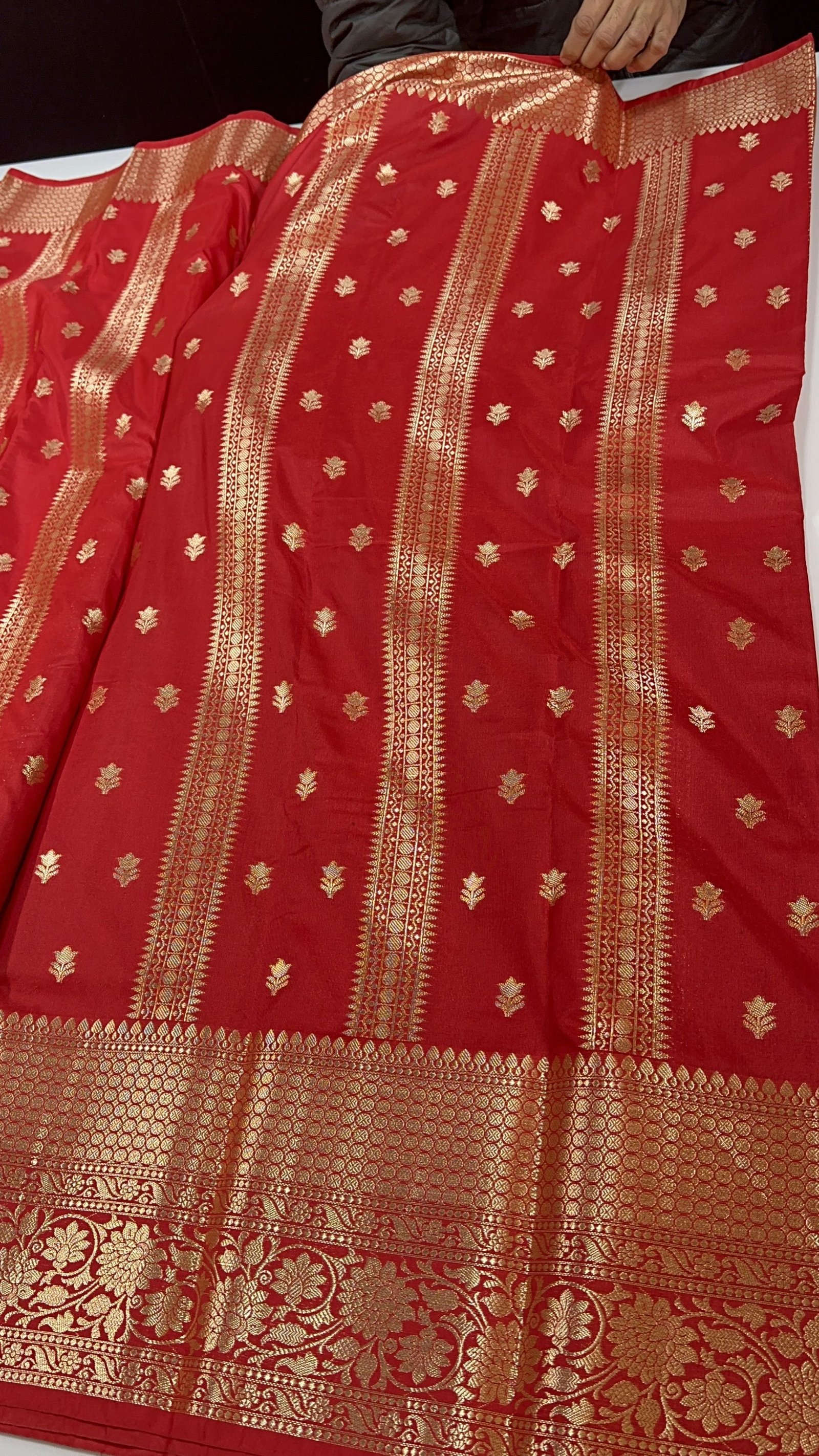 This Soft Banarasi Semi-Katan Silk Saree is a beautiful blend of comfort, tradition, and understated luxury. Woven in a rich self-shade, the saree carries a refined charm that feels graceful yet effortlessly wearable.