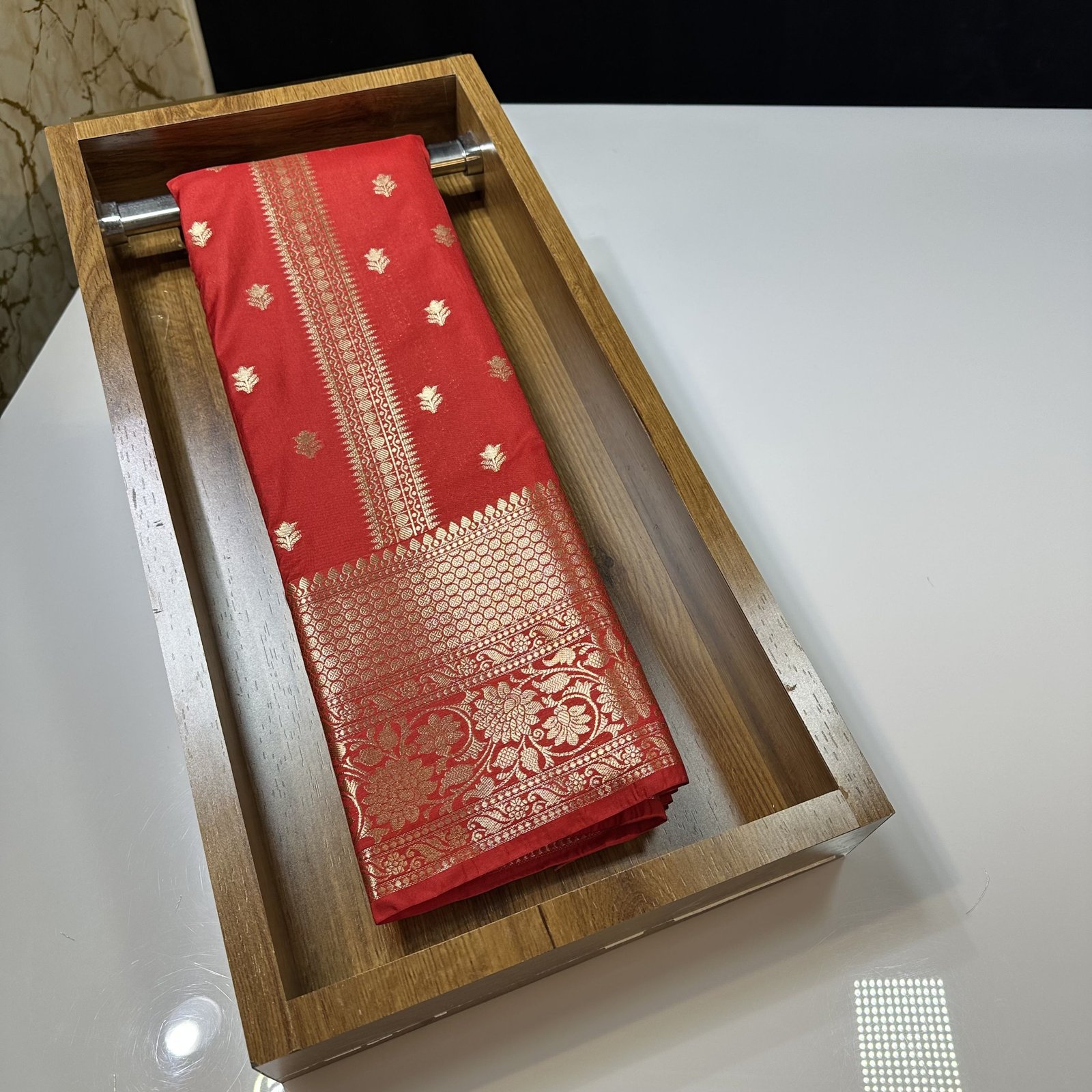 This Soft Banarasi Semi-Katan Silk Saree is a beautiful blend of comfort, tradition, and understated luxury. Woven in a rich self-shade, the saree carries a refined charm that feels graceful yet effortlessly wearable.