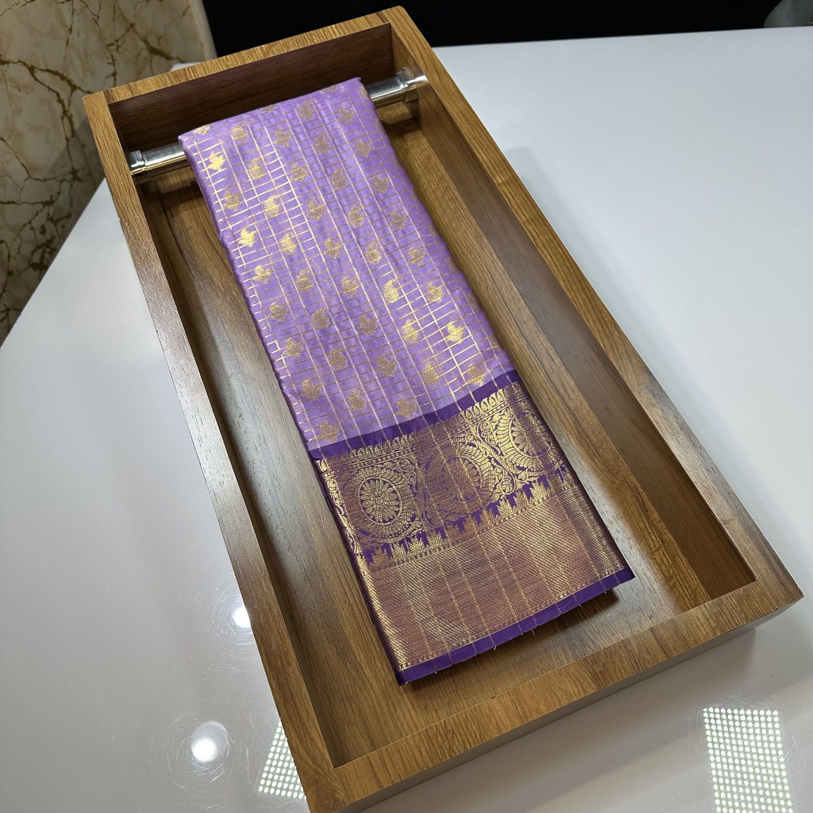 THE VINTAGE GADWAL PATTERN CHECKS AND BUTY INSPIRED SOFT SEMI-GADWAL SAREE WITH RICH BROCADE PALLU